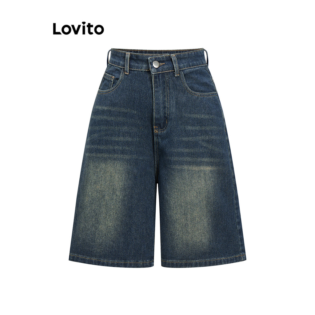 Lovito Short Jeans Casual Com Bolso Liso Para Mulheres L93AD053 (Multicolorido)