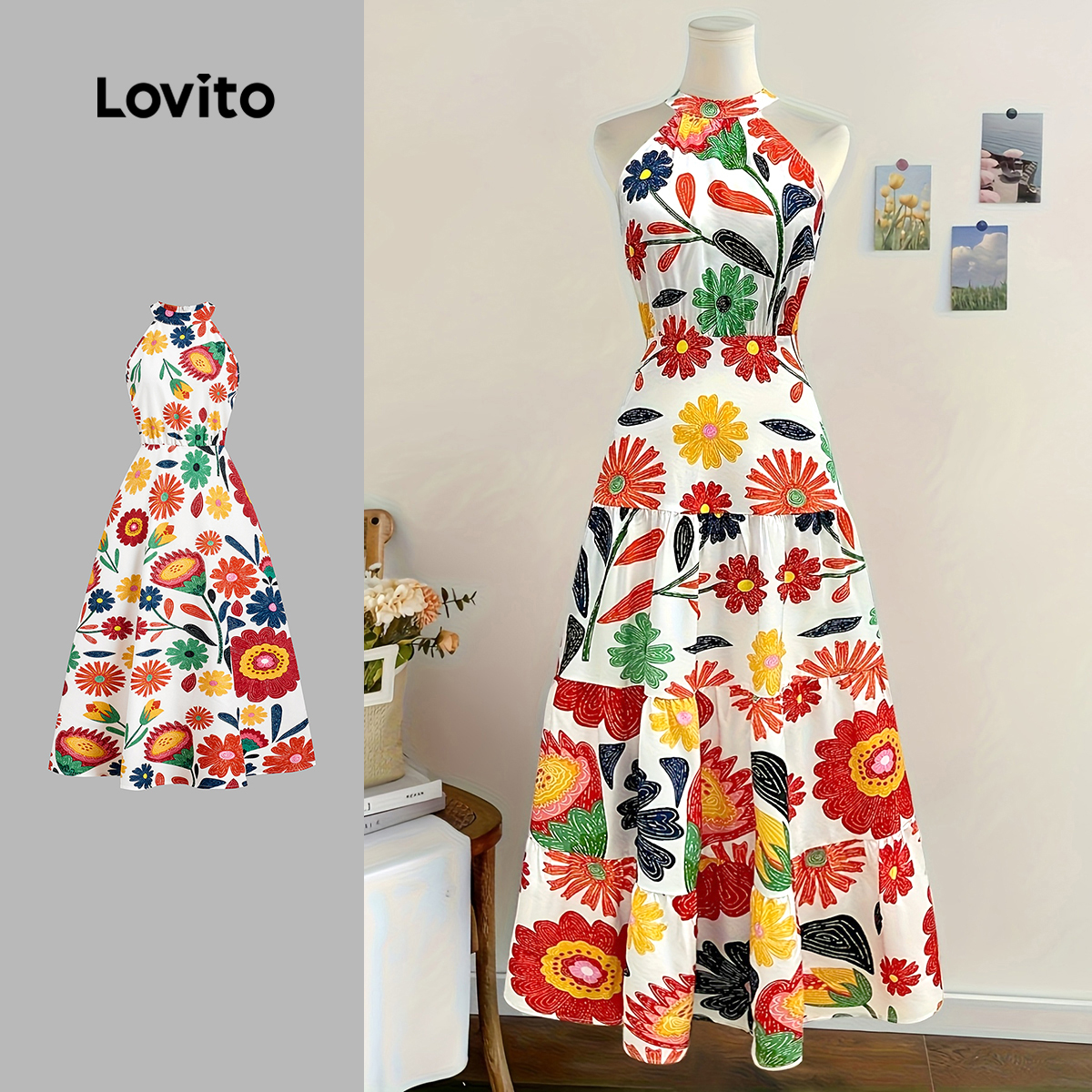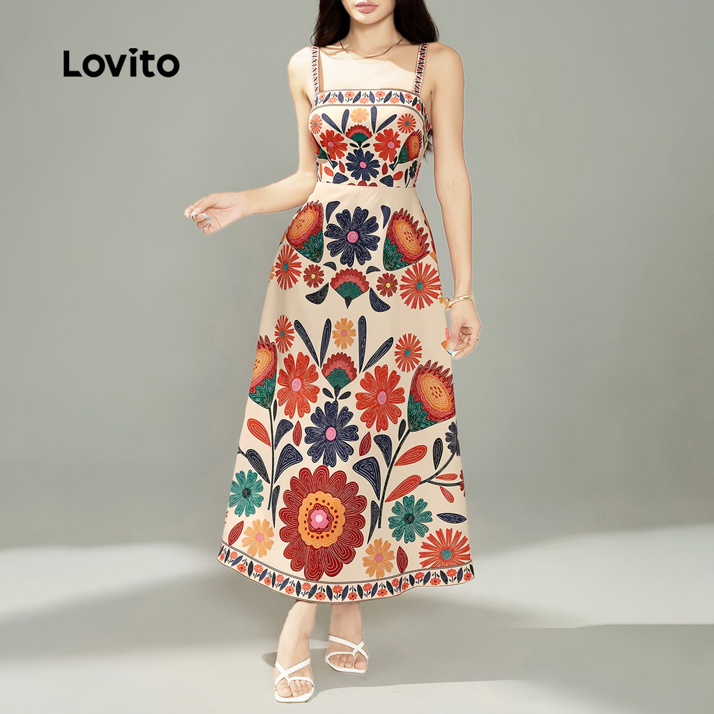 Lovito Vestido Boho Casual Resort Com Zíper Para Primavera/verão Feminino LBL29256