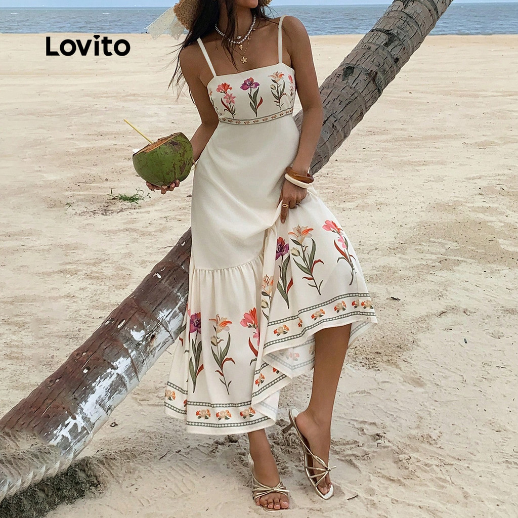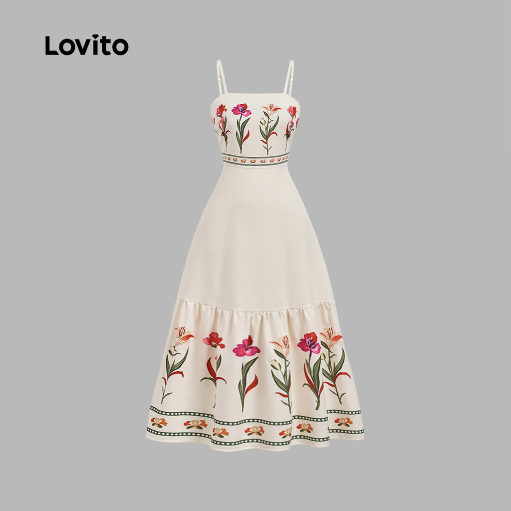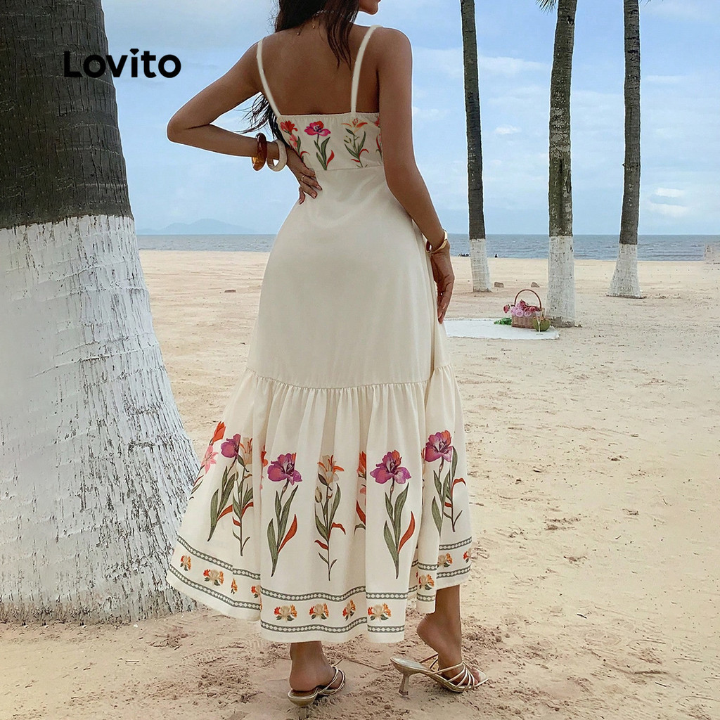 Lovito Vestido Longo Boho Com Estampa Floral Confeccionado Em Viscose E Linho Ideal Para a Primavera/verão LBL32081