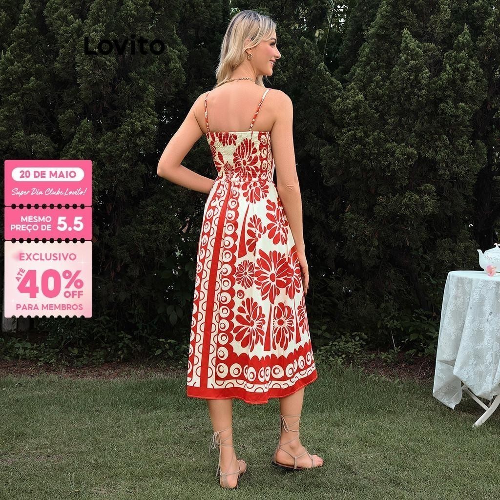 Lovito Vestido Boho Com Estampa Tribal E Vestido Franzido Para Mulheres LBL17603