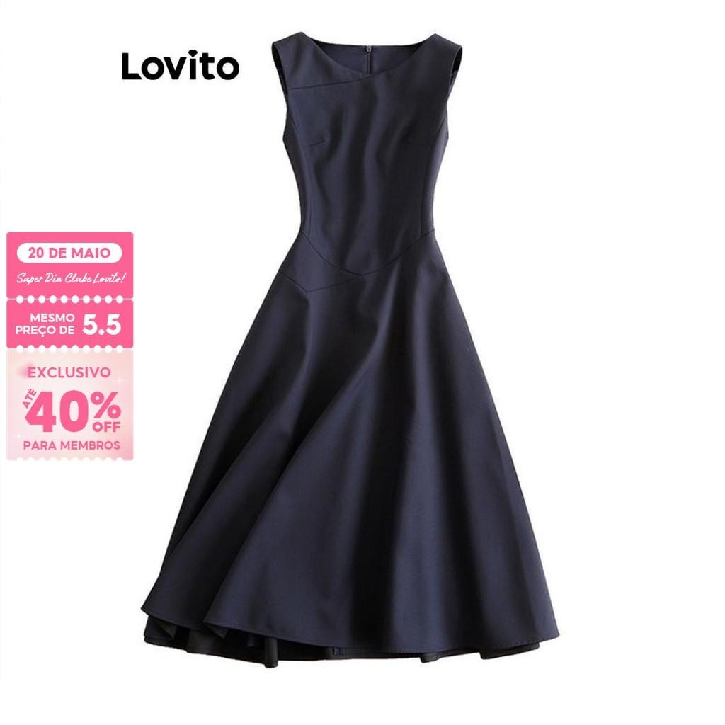 Lovito Vestido Elegante Com Costura Em Tecido Liso Para Mulheres LNL74404