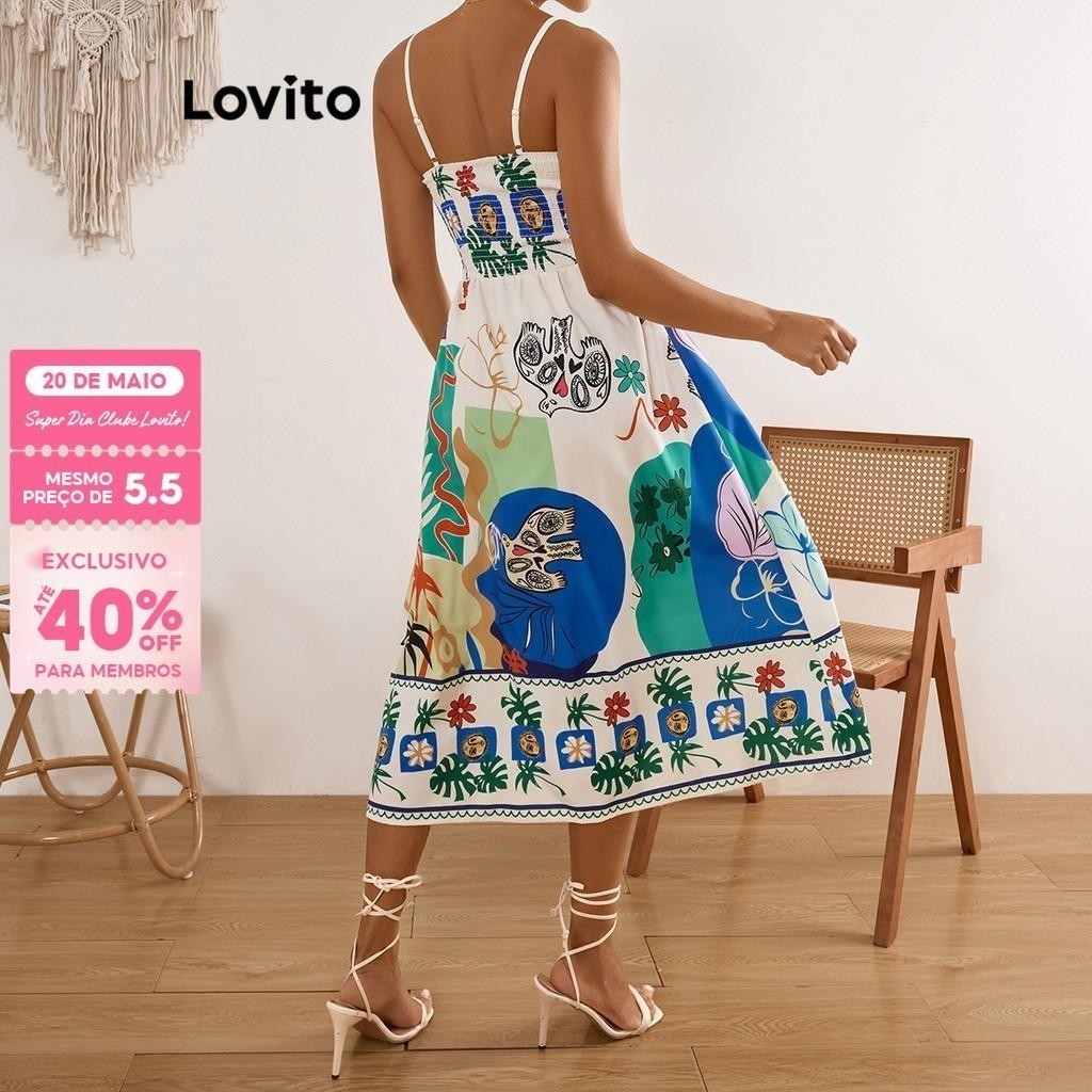 Lovito x Glenda Vestido Boho Pop Art Print Padrão Vestido Para Mulheres LBL17611