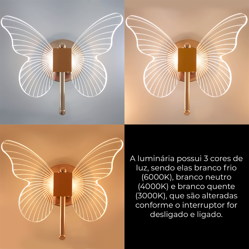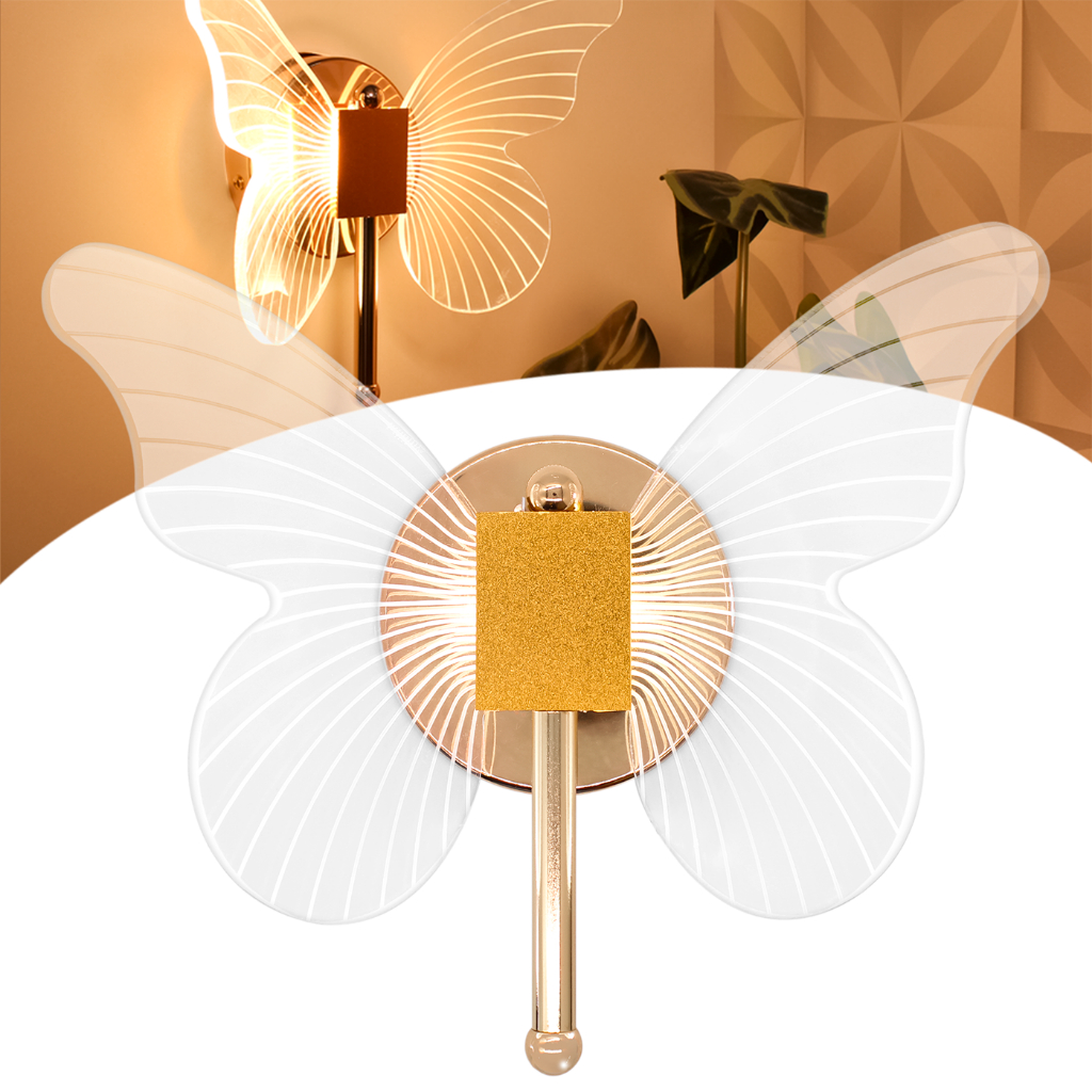 Luminária Borboleta Arandela Dourada De Parede Ar1122
