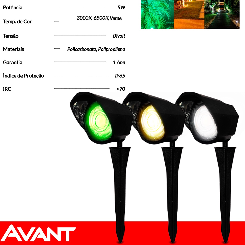 Luminária Espeto Jardim Led 5w Prova D'água Bivolt Avant Decoração Enfeite IP65 Iluminação Solar