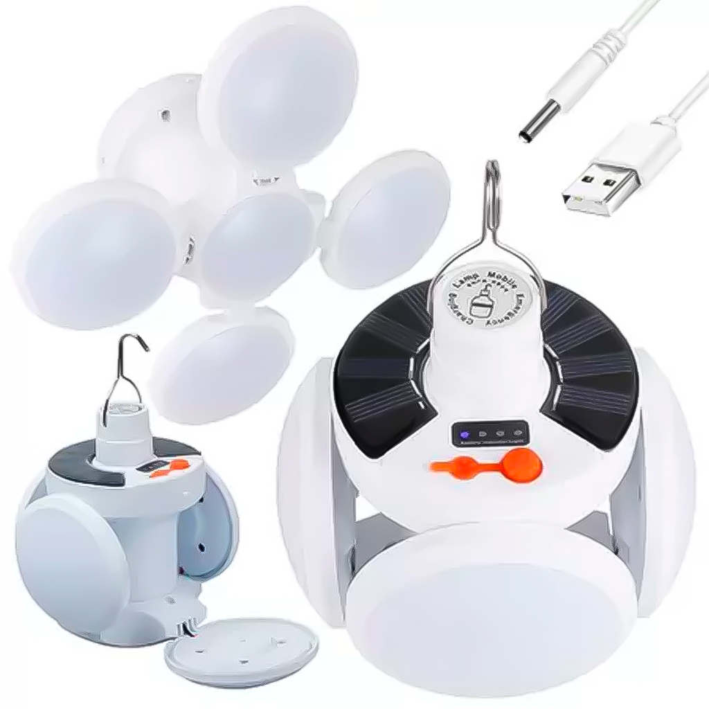 Luminária LED Ajustável Para Camping Pesca 5 Modos Carregamento USB Solar Ajustável Portátil