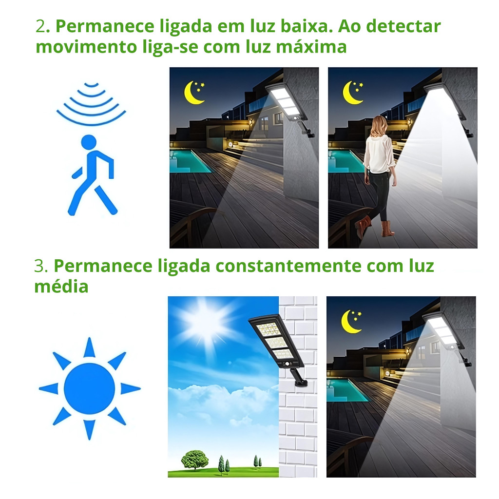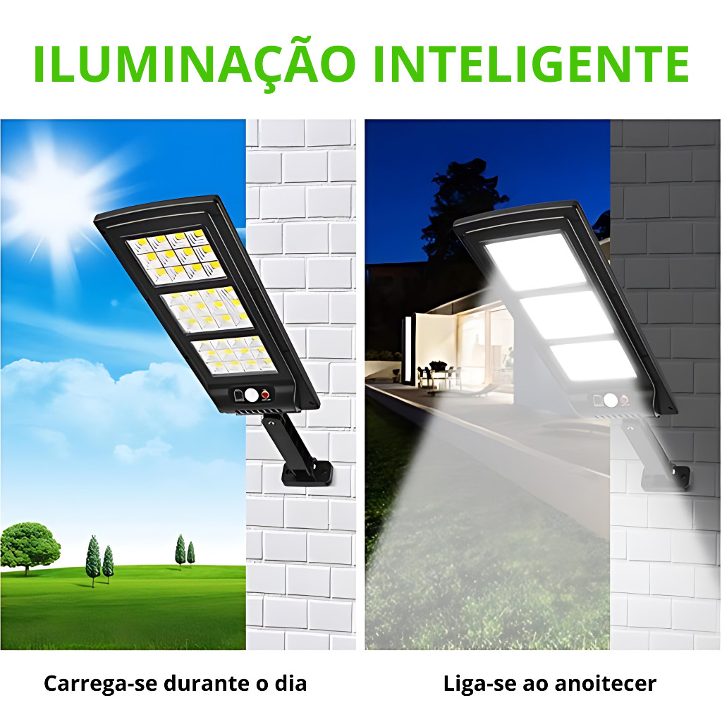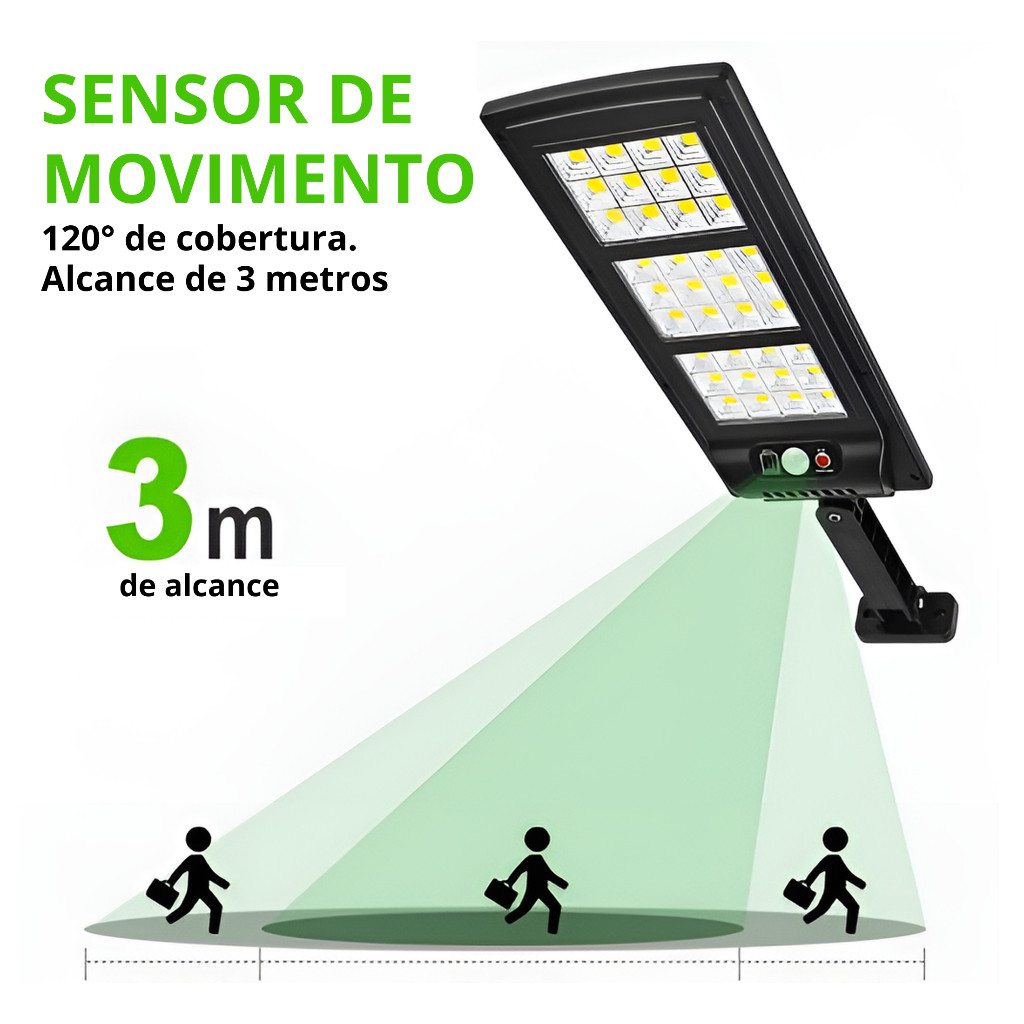 Luminária Led 300W 180cob Solar Refletore Poste Rua Sensor Controle Com 3 Funções
