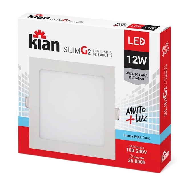 Luminária Led Embutir Quadrada Slim 12W 6000K Kian