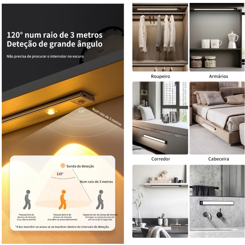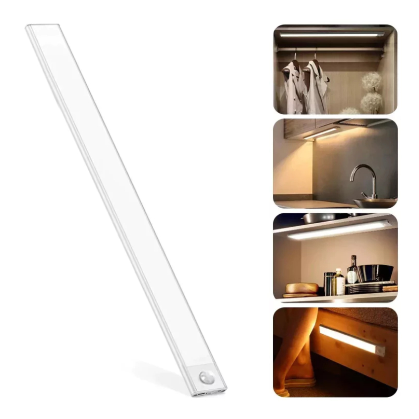 Luminária Led Luz Noturna Sensor Movimento USB Recarregável para Cozinha Closet Quarto 10/20/30 CM
