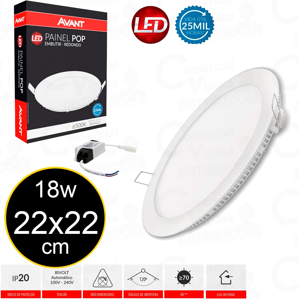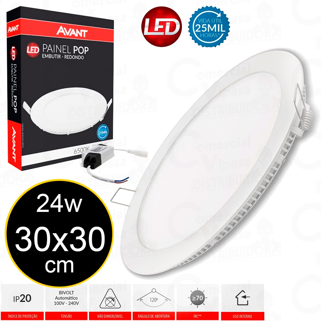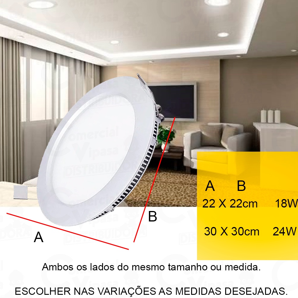 Luminária Painel Led Embutir Plafon Redondo Branco 18W - 24W Bivolt Original - AVANT