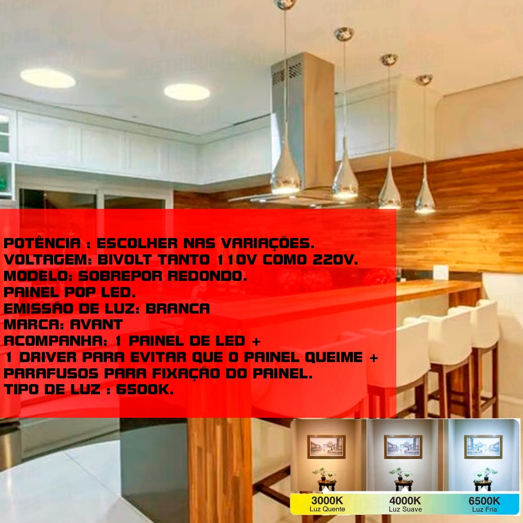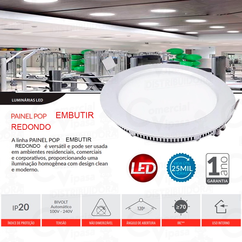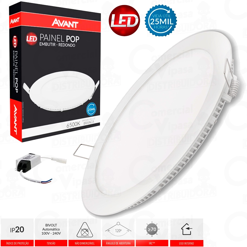 Luminária Painel Led Embutir Plafon Redondo Branco 18W - 24W Bivolt Original - AVANT
