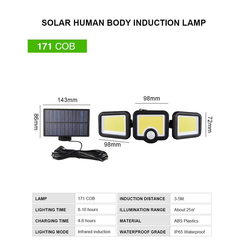 Luminária Solar Parede 120 Cob 24w ou 171 cob 39w Sensor Presença Com 3 Funções Separado