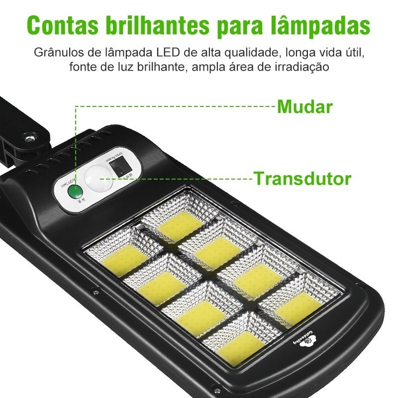 Luminária Solar Poste Rua Refletor Sensor Movimento Com controle