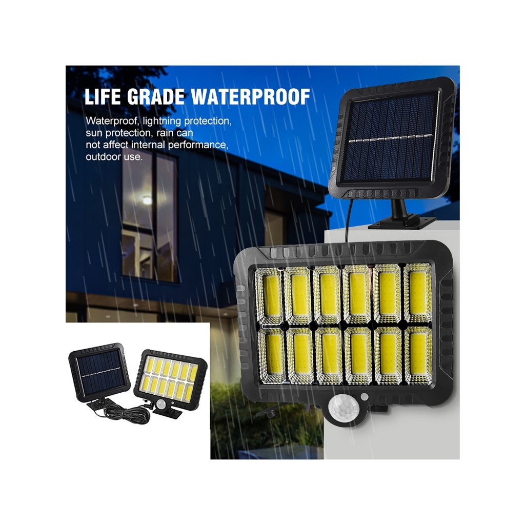 Luminária Solar de Parede 120 Cob 24W Sensor Presença Com 3 Funções Separado