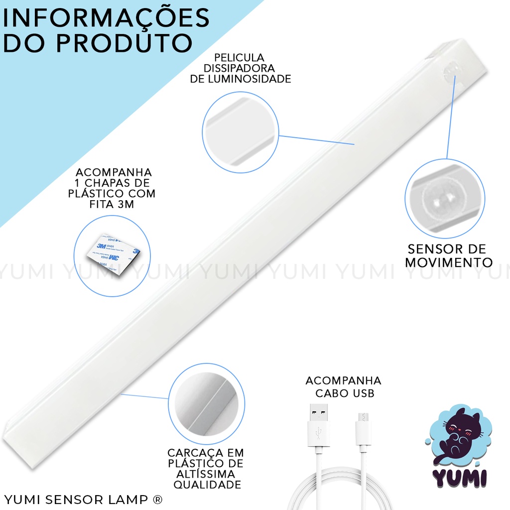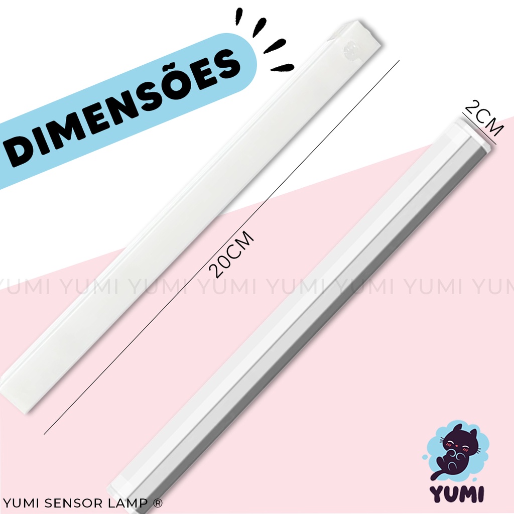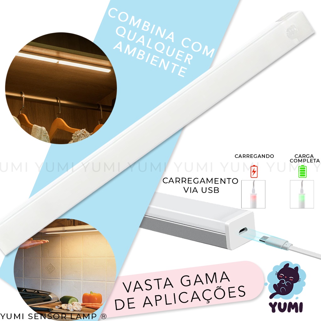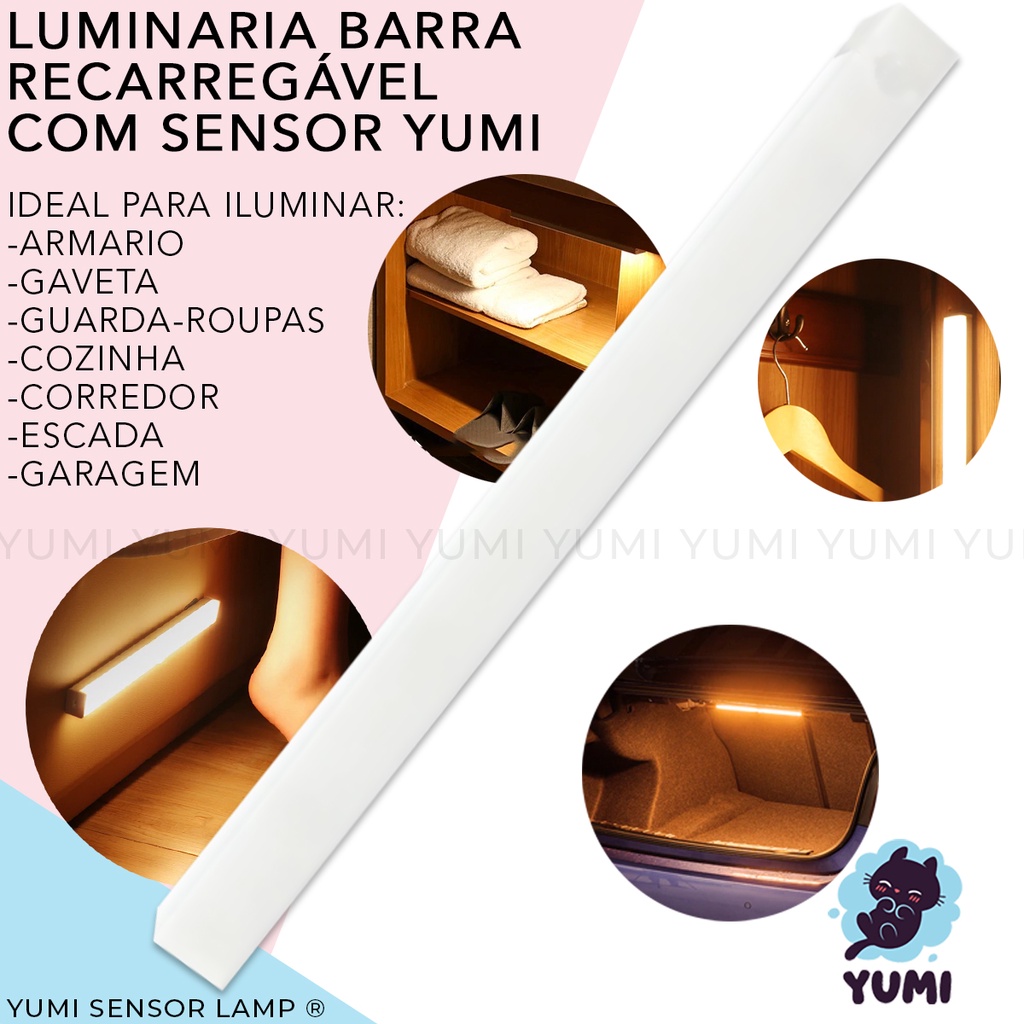 Luminária Spot Led Sensor De Presença 20cm Spot Cozinha Armários Closet Gavetas Recarregável USB Branco Quente