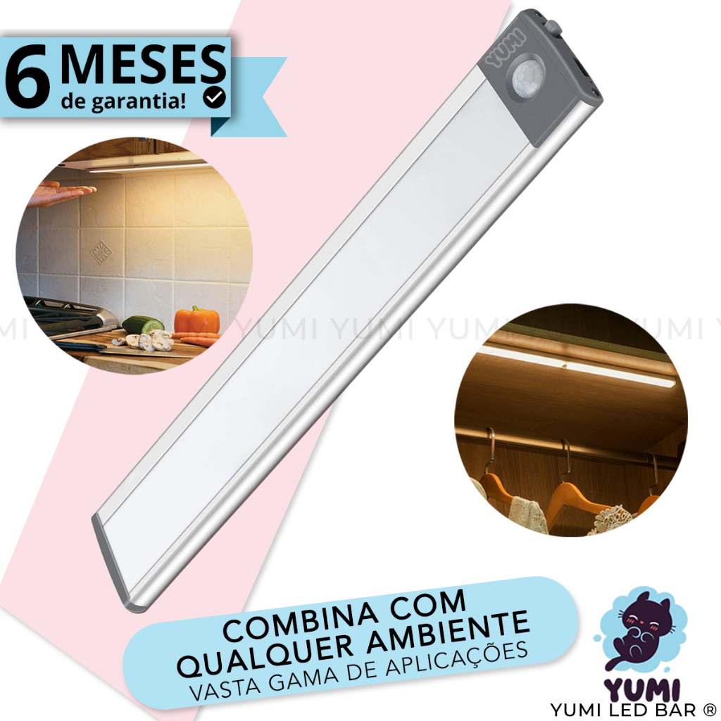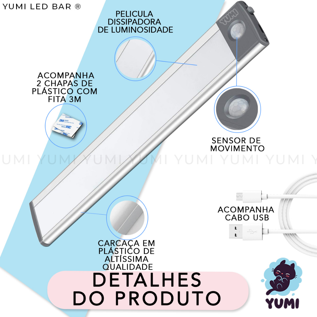 Luminaria Barra 40 Cm Lampada Led Sem Fio Com Sensor Presença Spot Cozinha + Usb Recarregável Branco Frio ou Quente Tubular