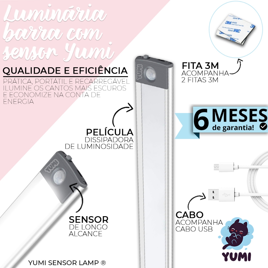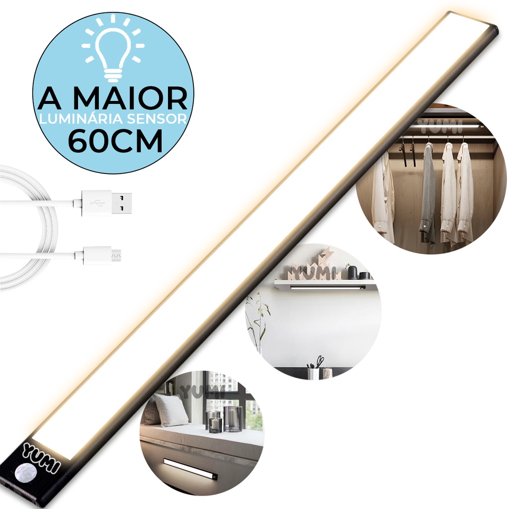 Luminaria Barra Led Sensor De Presença Armários Cozinha 60cm O Maior C/ Bateria