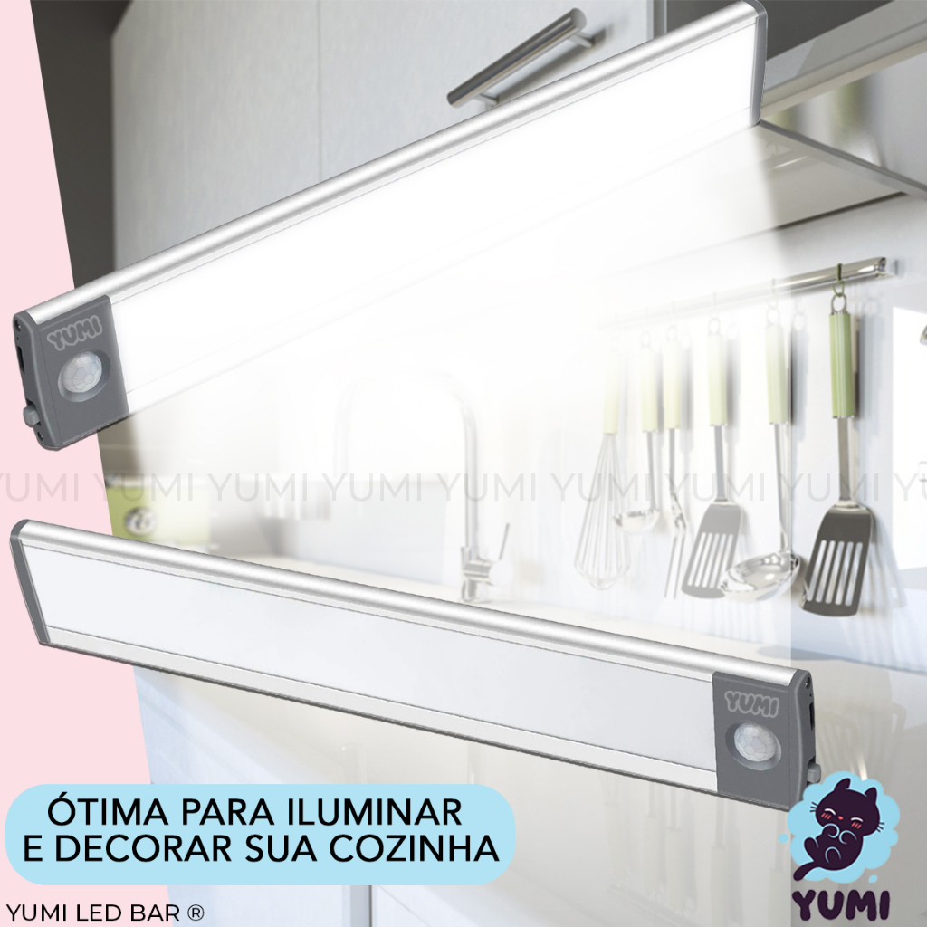 Luminaria Lampada Led Sem Fio Com Sensor Presença Barra 40 Cm Grande Branco Frio ou Quente Tubular