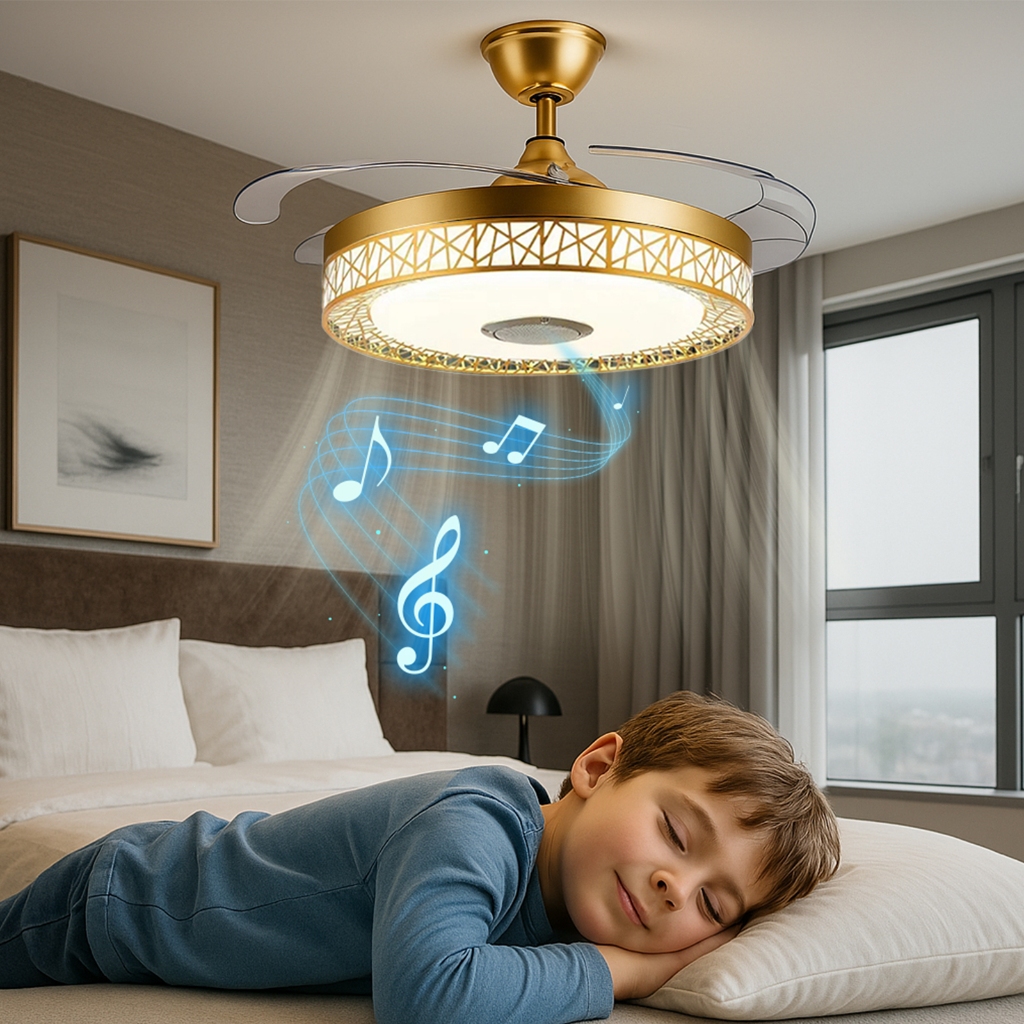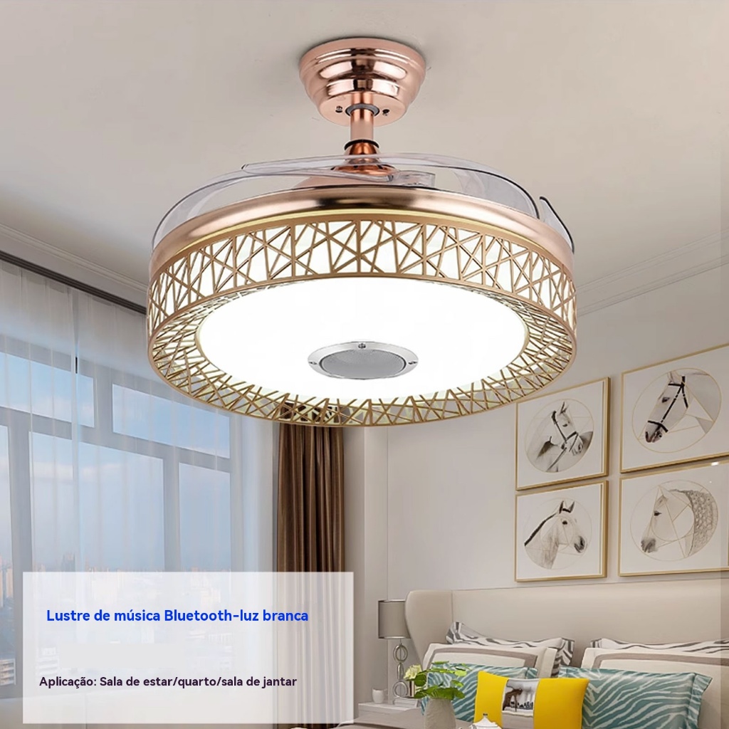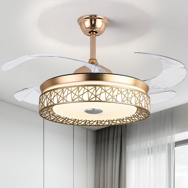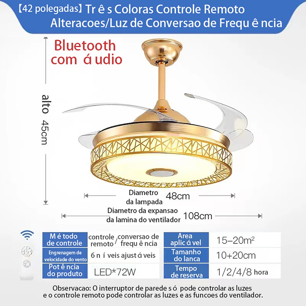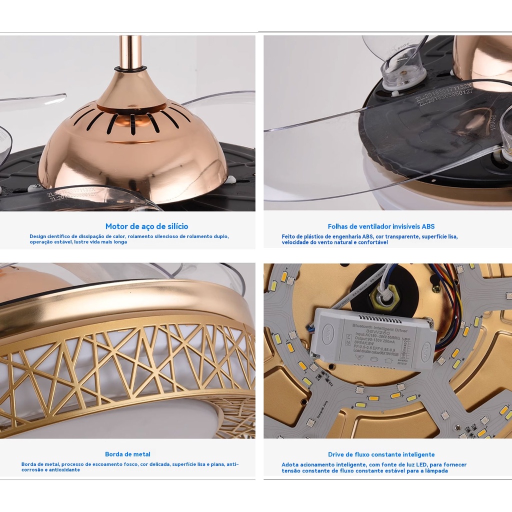 Lustre Ventilador de Teto Retrátil Dourado com Controle Remoto Ventilador De Teto LED- Bivolt