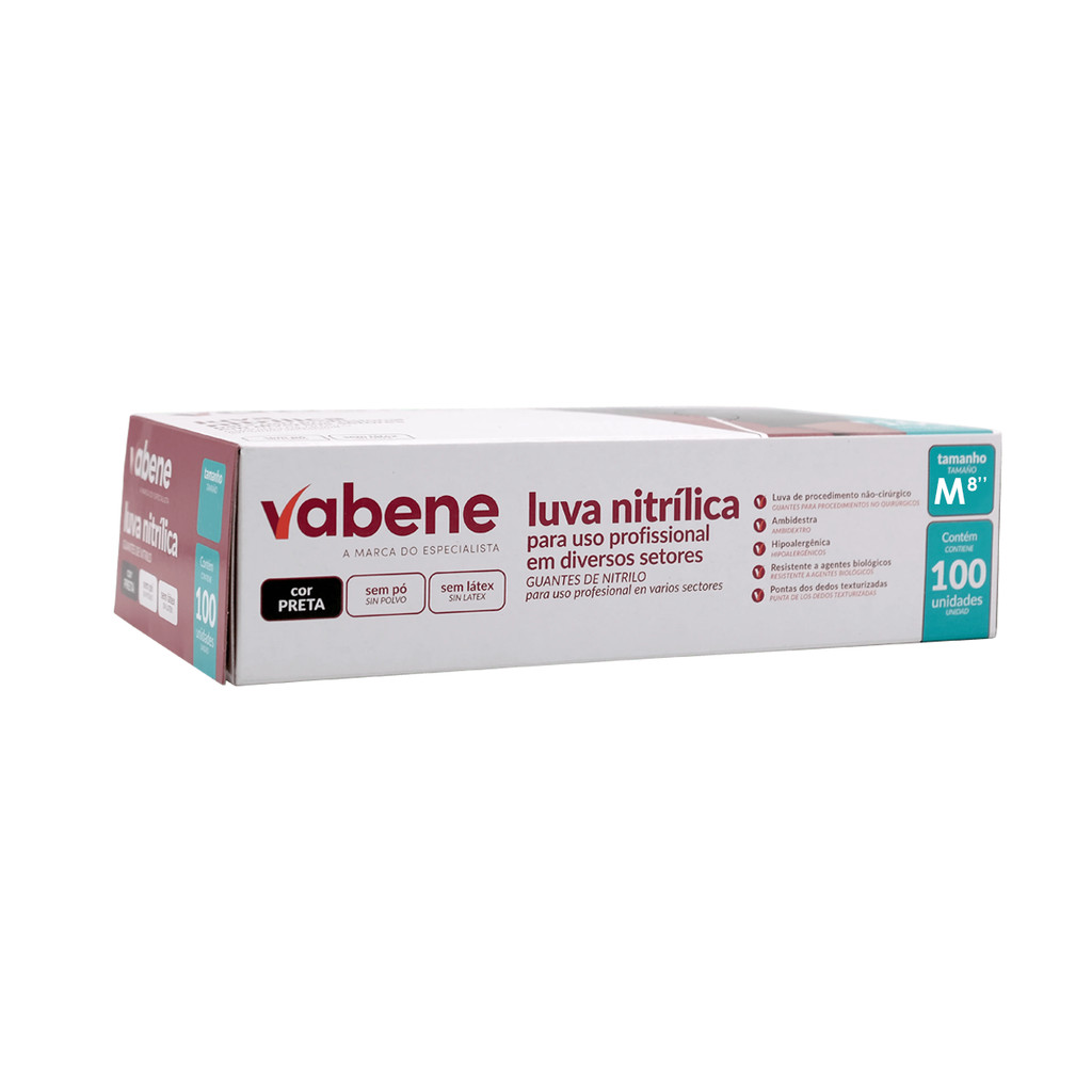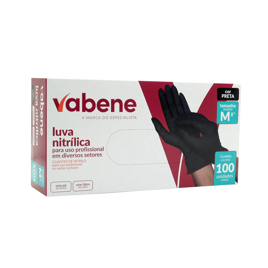 Luva Descartável Nitrílica sem Pó Preta M CA 44034 com 100 Unidades Vabene