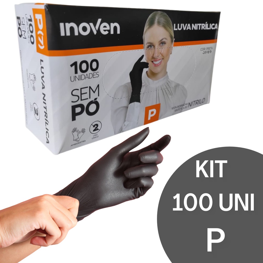 Luva Nitrilica Preta sem pó - P M G - c/ 100 unidades descartável
