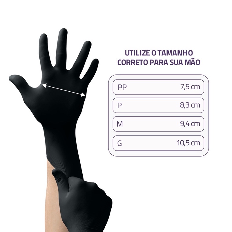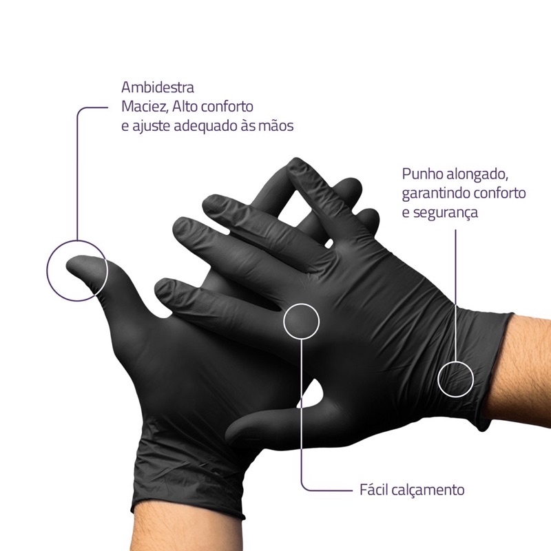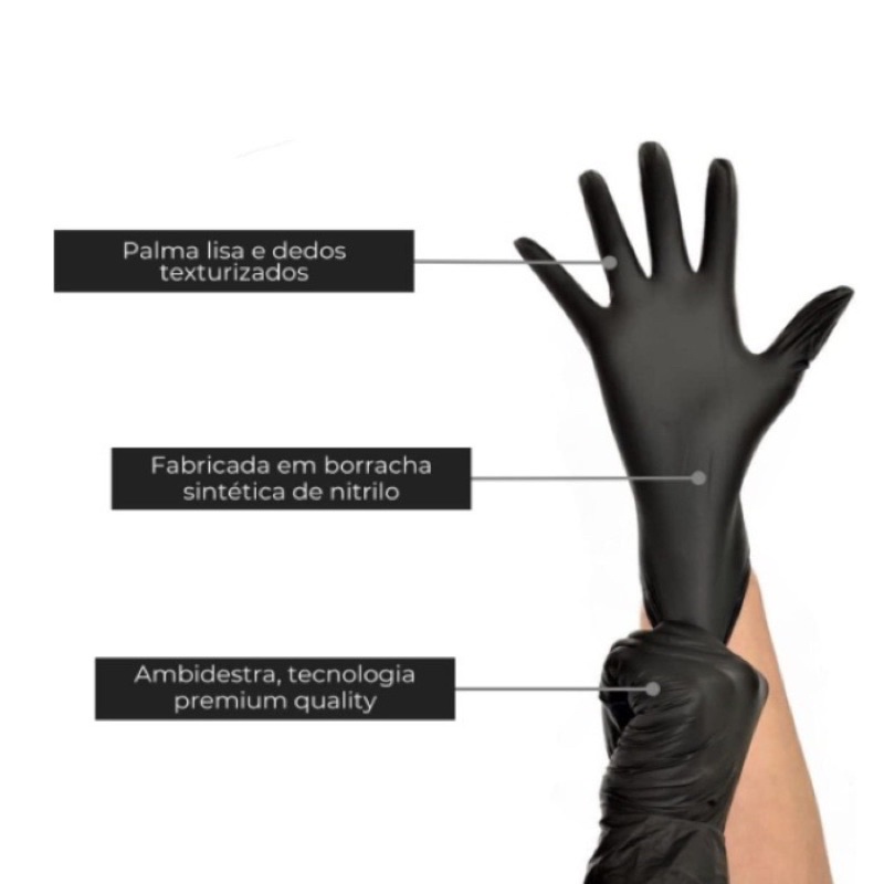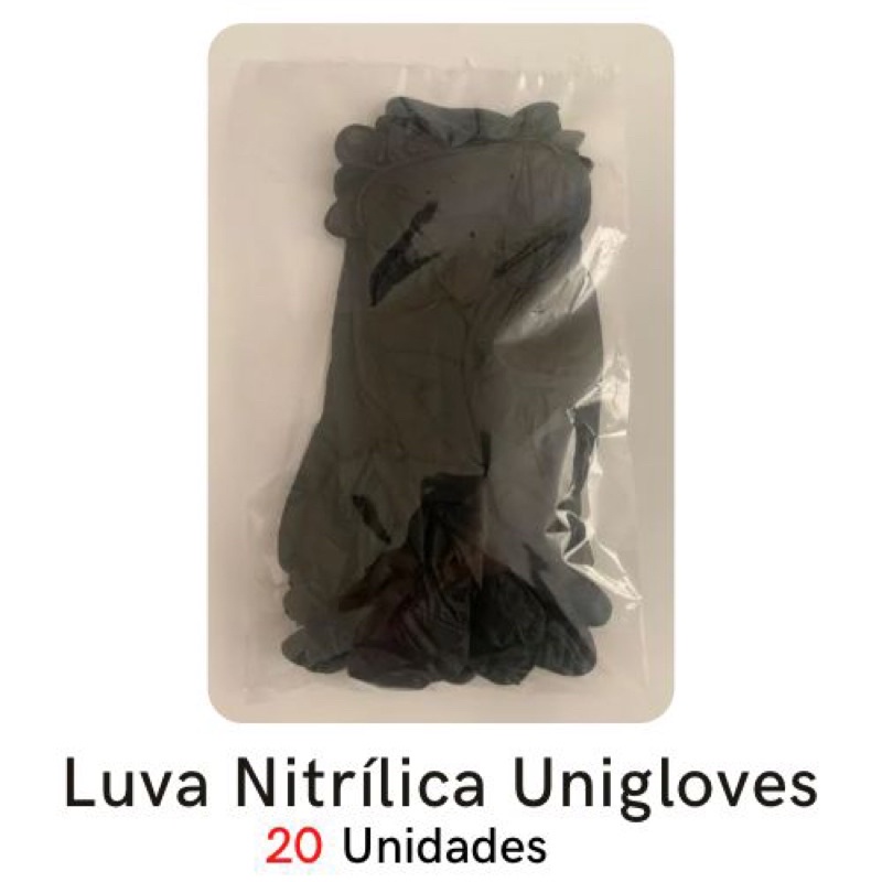 Luva Preta Descartável Nitrílica da marca Unigloves sem pó / 10 e 20 unidades de luvas