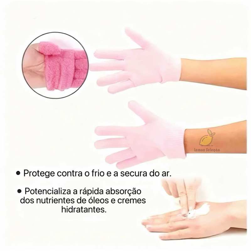 Luva Silicone Gel Hidratante Cicatrizante Mãos Ressecadas Rachada Esfoliante spa clareamento