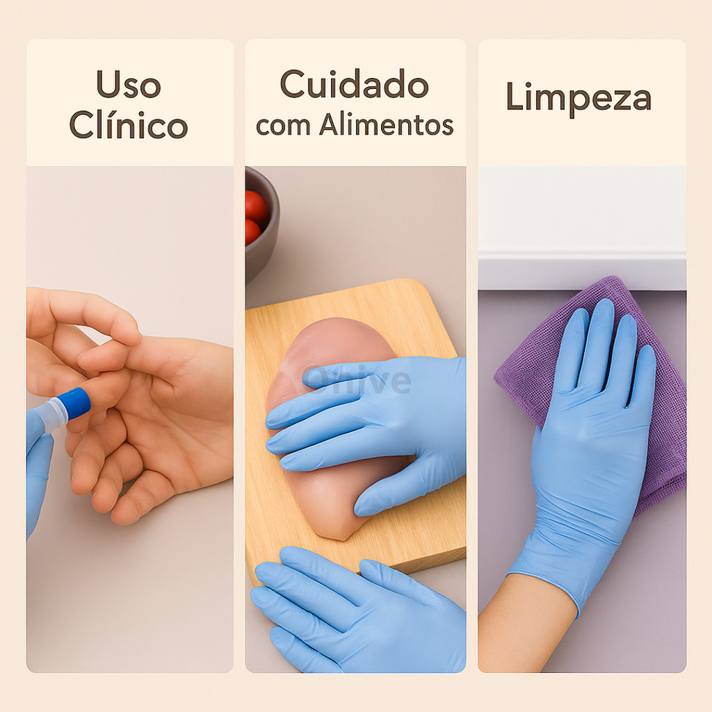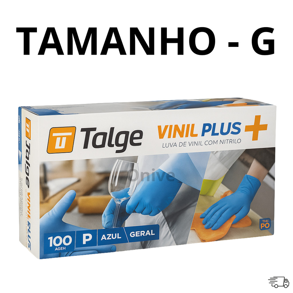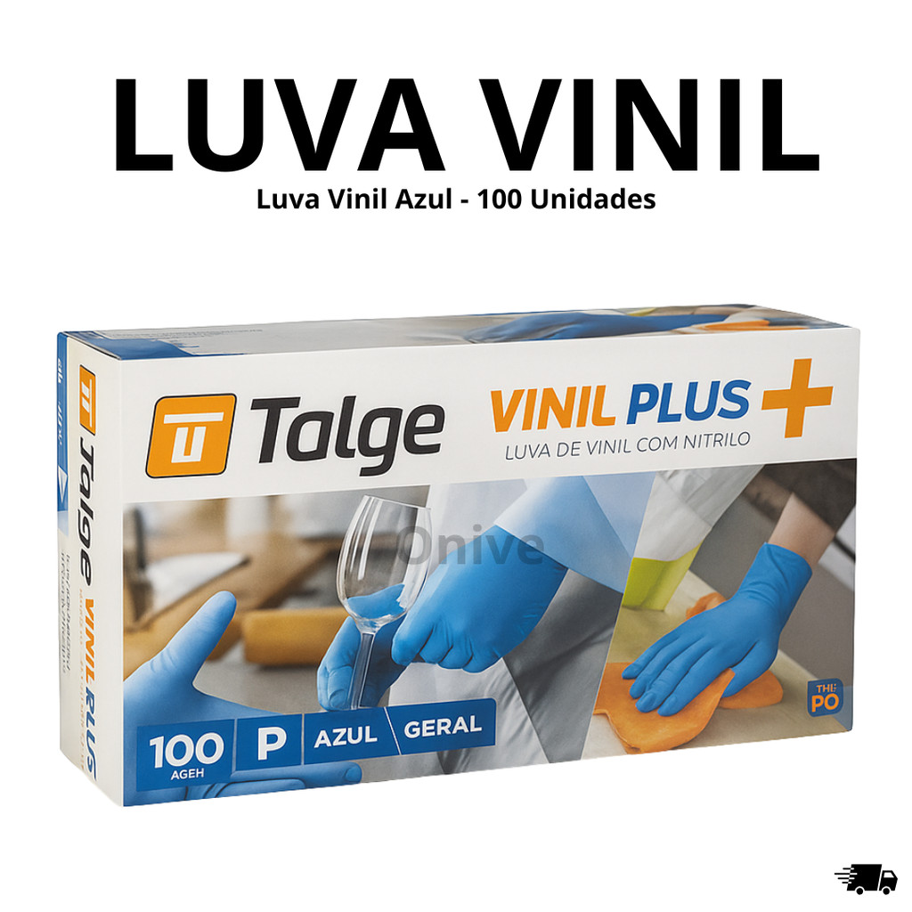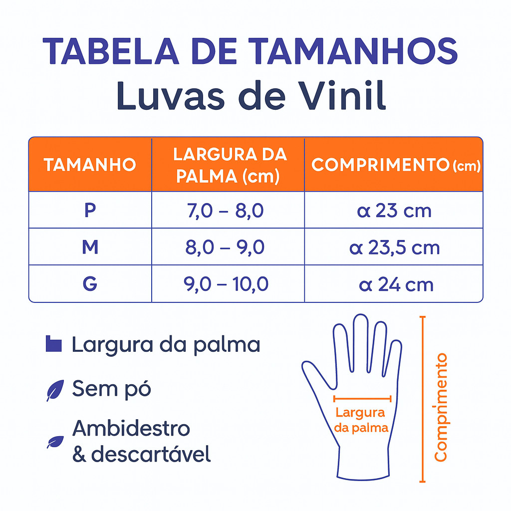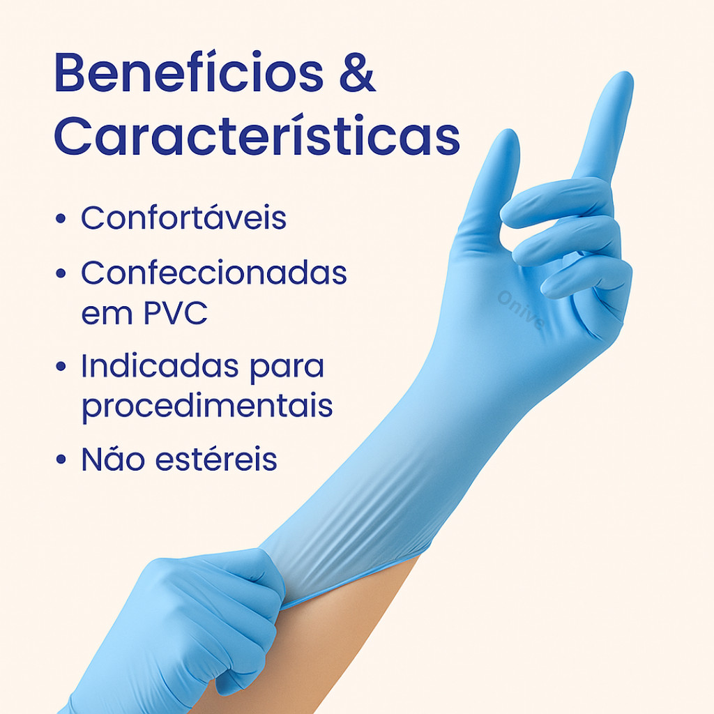 Luva de Vinil Descartável Sem Pó Azul Resistente 100 Unidades
