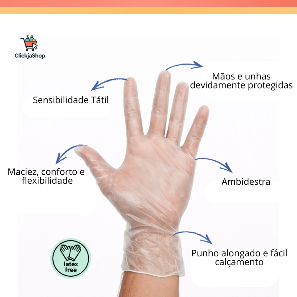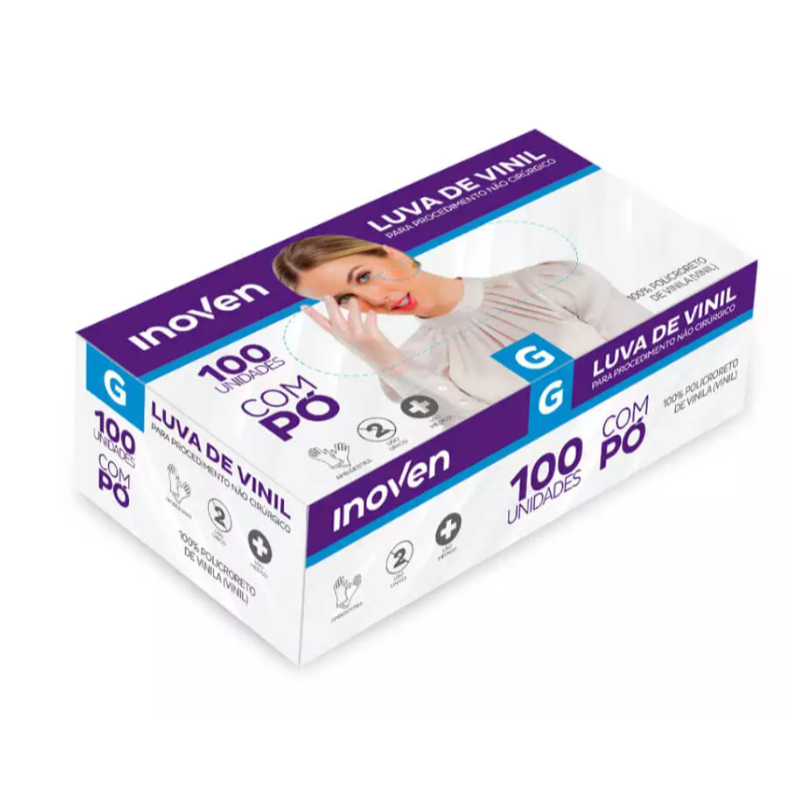 Luva de Vinil Sem Pó com 100 Unidades Caixa Tam P. M. G