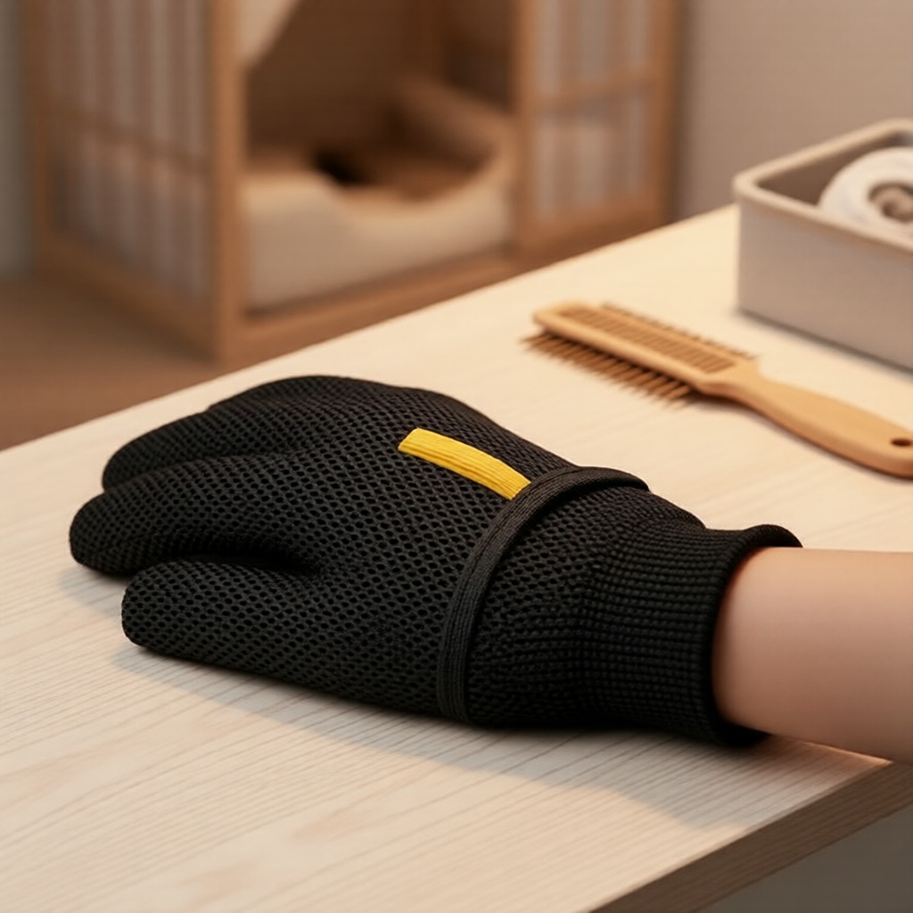 Luva de remoção de pelos de estimação de malha preta ergonômica, luva de limpeza reutilizável e lavável