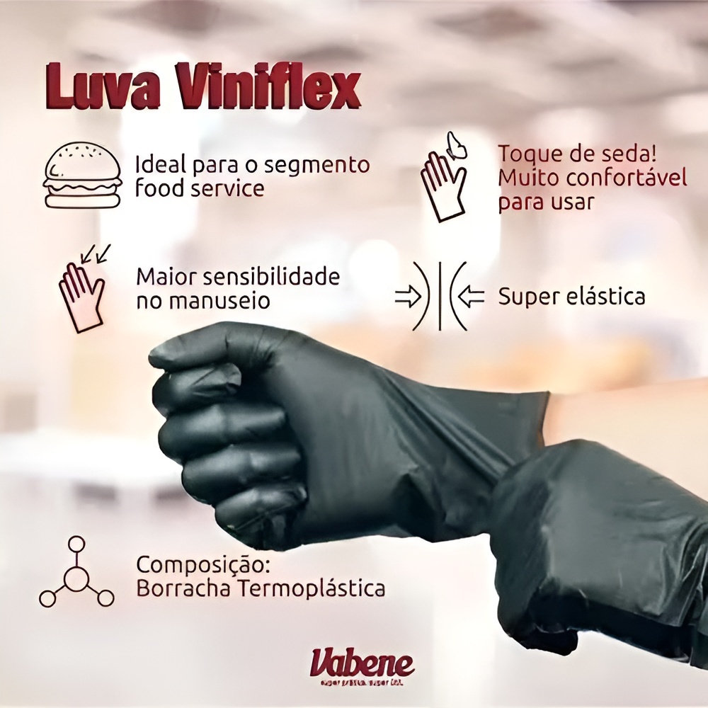 Luvas descartável preta viniflex sem pó P M G GG Vabene TPE