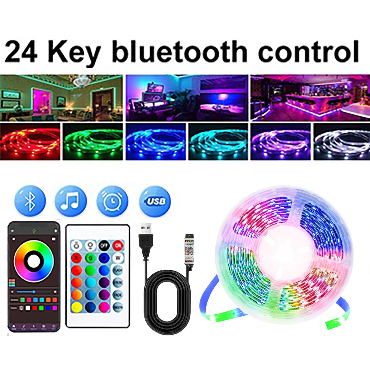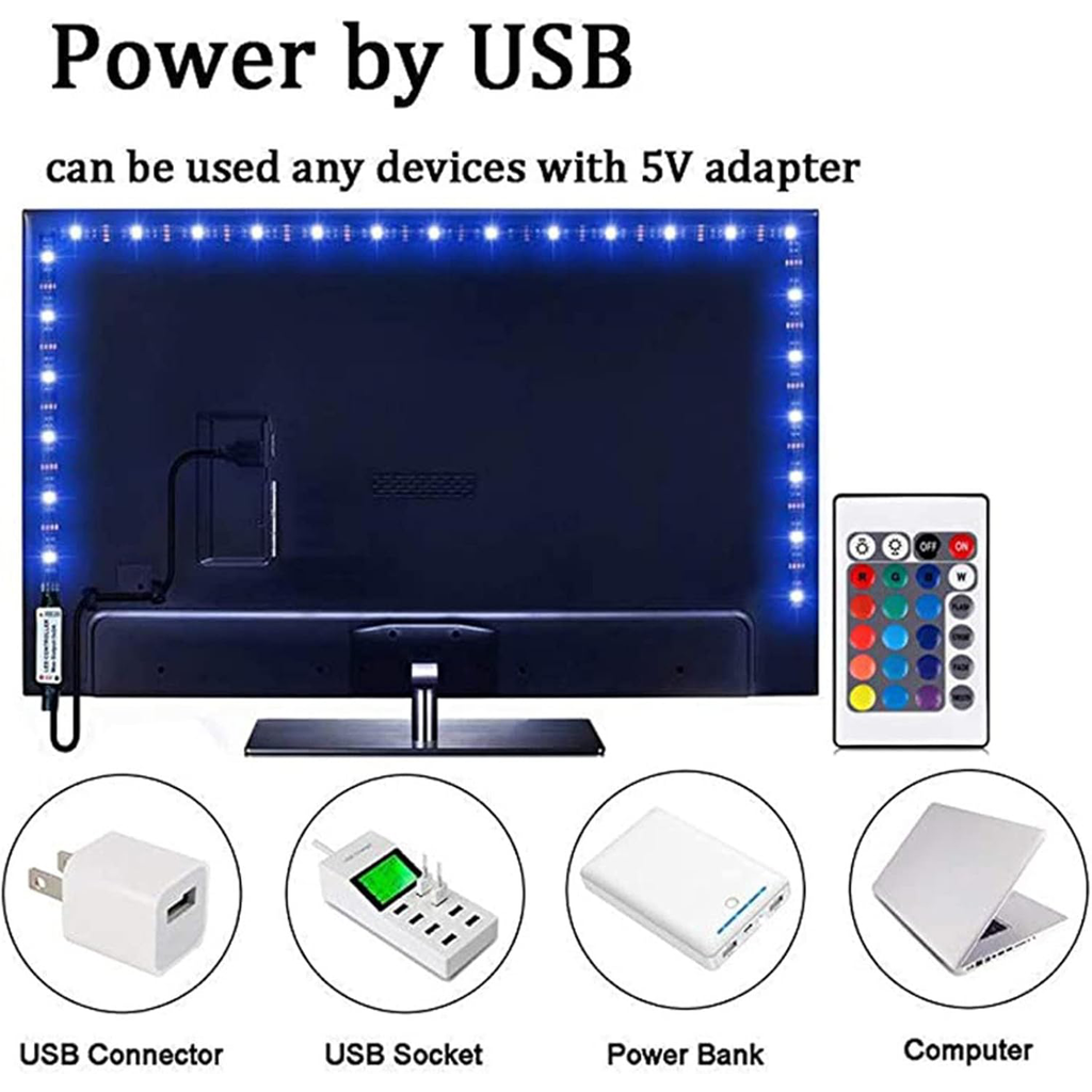 Luz De Tira LED 5050 RGB-Temporizador De Sincronização De Música USB 5V Com Controle Remoto De 24 Teclas Para Decoração