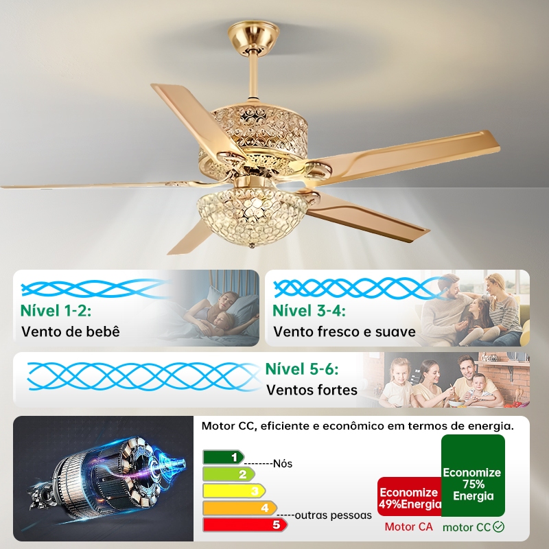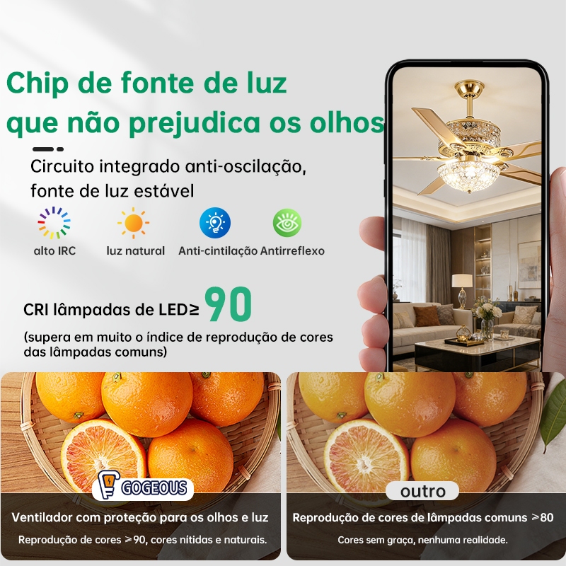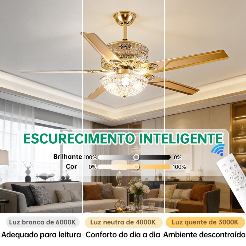 Luz Ventilador 3 Cores LED Controle Remoto Bivolt 110 220V Para Apartamento