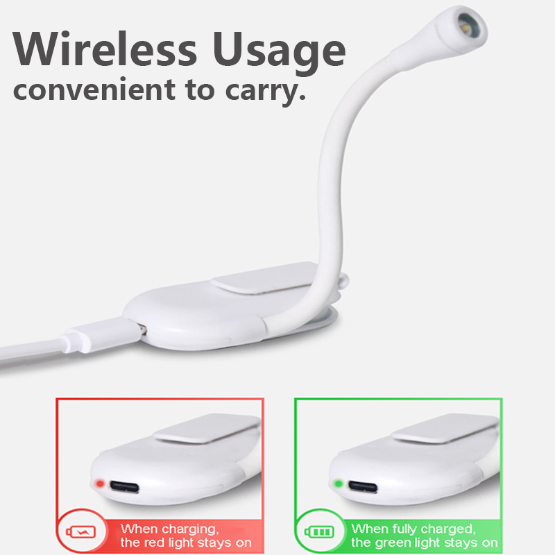 Luz de Livro LED Portátil Recarregável USB, Protetora dos Olhos, Mini 360° Clip-On para Leitura.