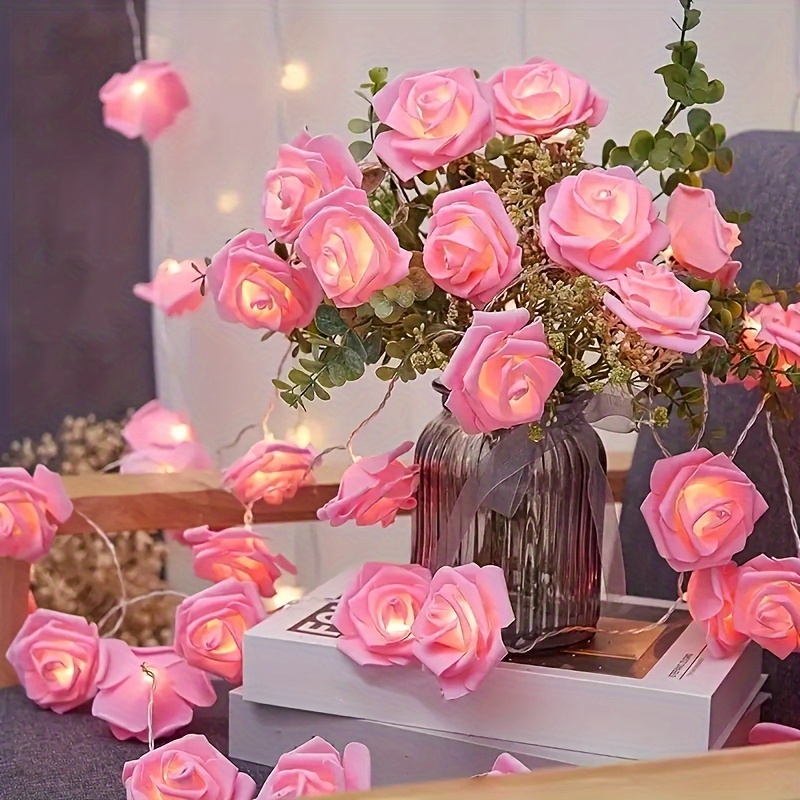 Luzes De Corda De Rosa De Simulação De LED-Decoração Romântica Interna E Externa , Perfeitas Para Festas De Fim De Ano A