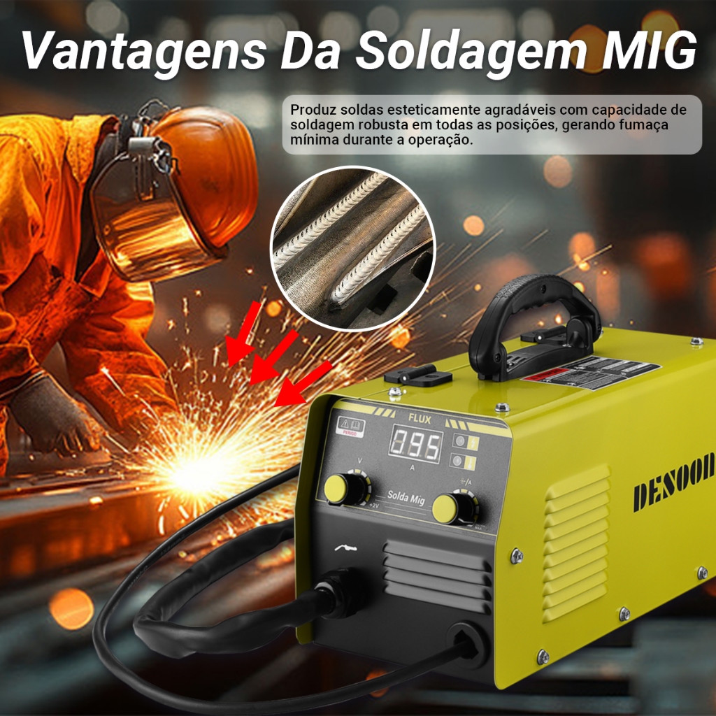 Máquina De Solda MIG 100A Eletrodo Professional Sem Gás 220V Monofásica Tecnologia IGBT Desoon