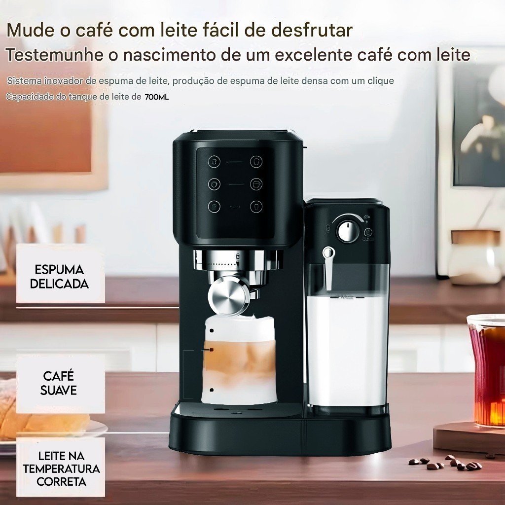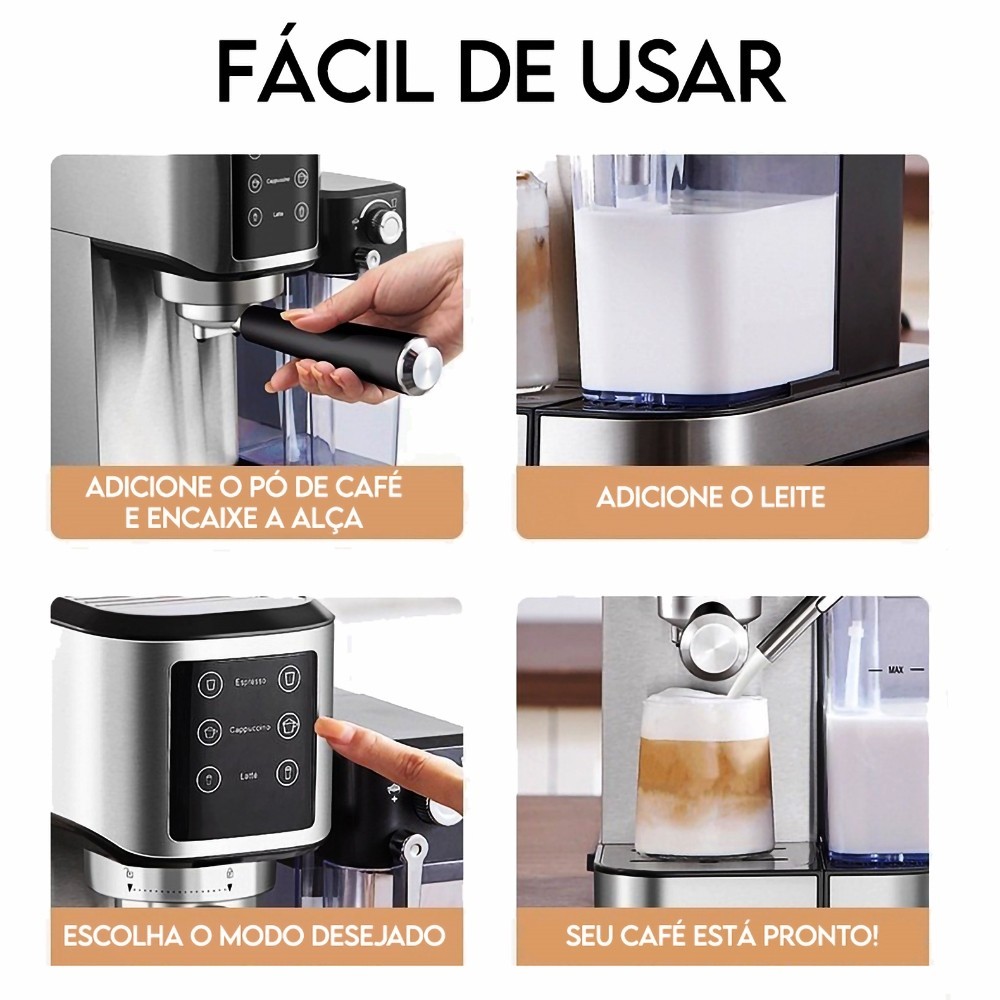 Máquina de Café Cappuccino Latte Cafeteira Gourmet 110V 20 Bar Espuma Leite rj