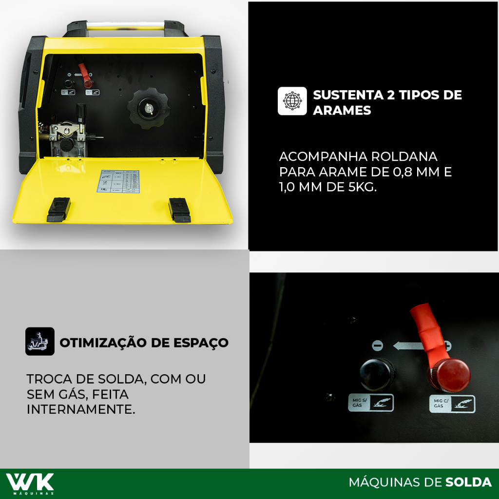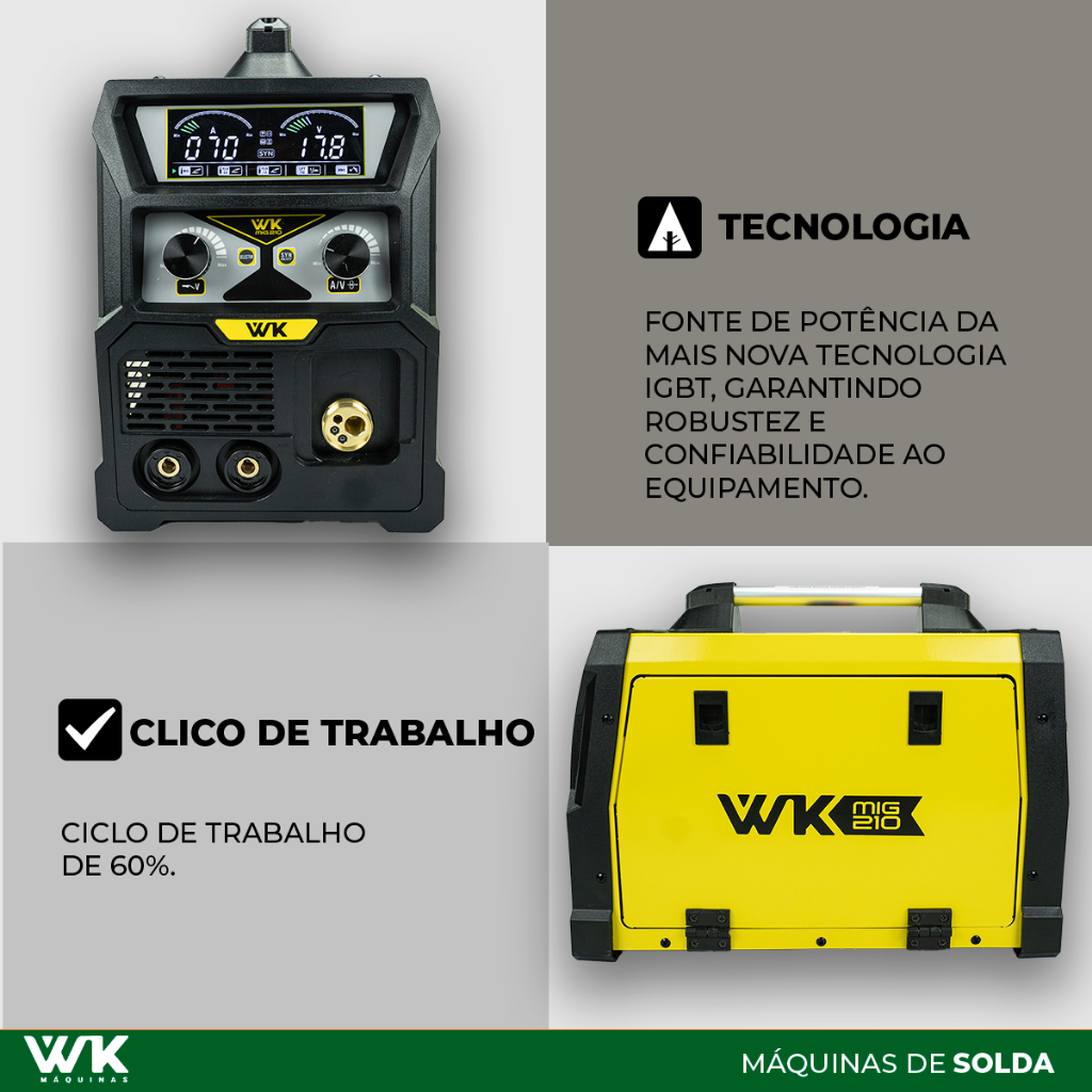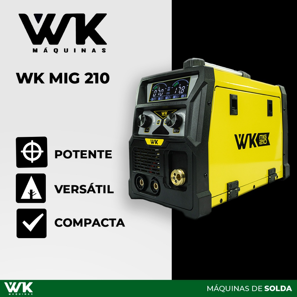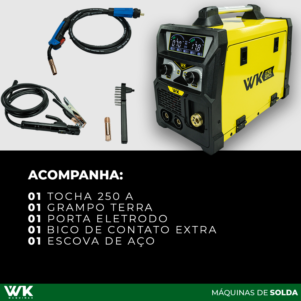 Máquina de Solda Multiprocesso WK MIG 210A 220V MIG com/sem gás MMA TIG LIFT