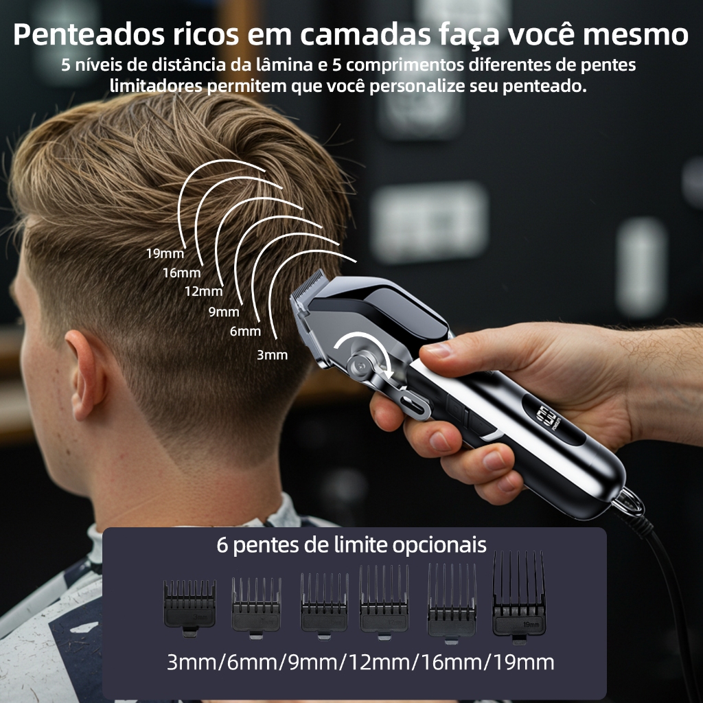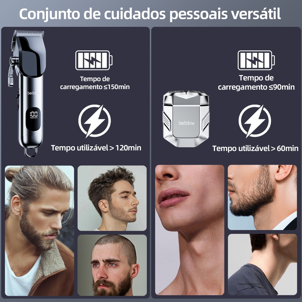 Máquina de cortar cabelo e barbeador multifuncional Bettdow 18em1 com dois modos de uso, interface TypC-C e display LED