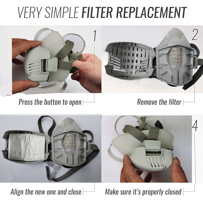 Máscara De Gás De Silicone Macio Reutilizável Meio Respirador Com Filtros Para Marcenaria E Soldagem