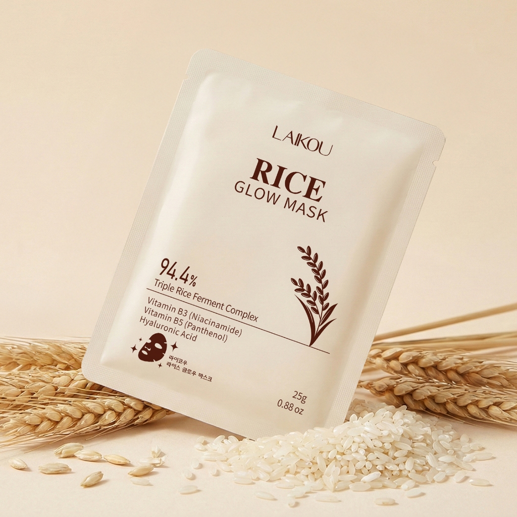 Máscara LAIKOU Rice Glow-Em Folha Ultrahidratante E Iluminadora Com Fermento Triplo De Arroz 94.4 % Niacinamida