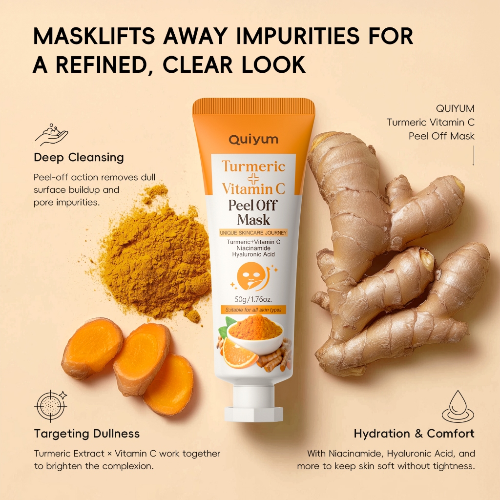 Máscara Peel-Off De Cúrcuma E Vitamina C QUIYUM 50g | Limpeza Iluminadora Suave Revela Brilho Da Pele