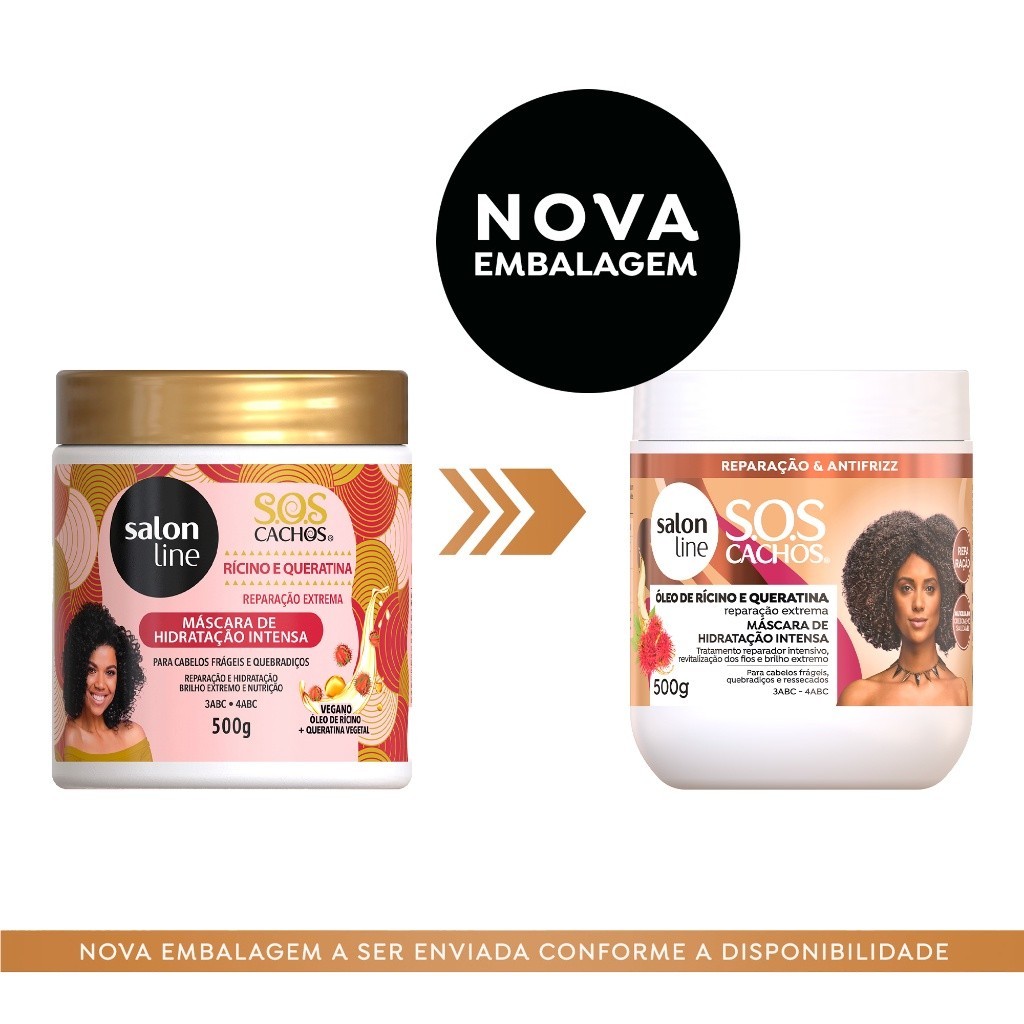 Máscara de hidratação SOS Cachos Rícino e Queratina Salon Line 500g