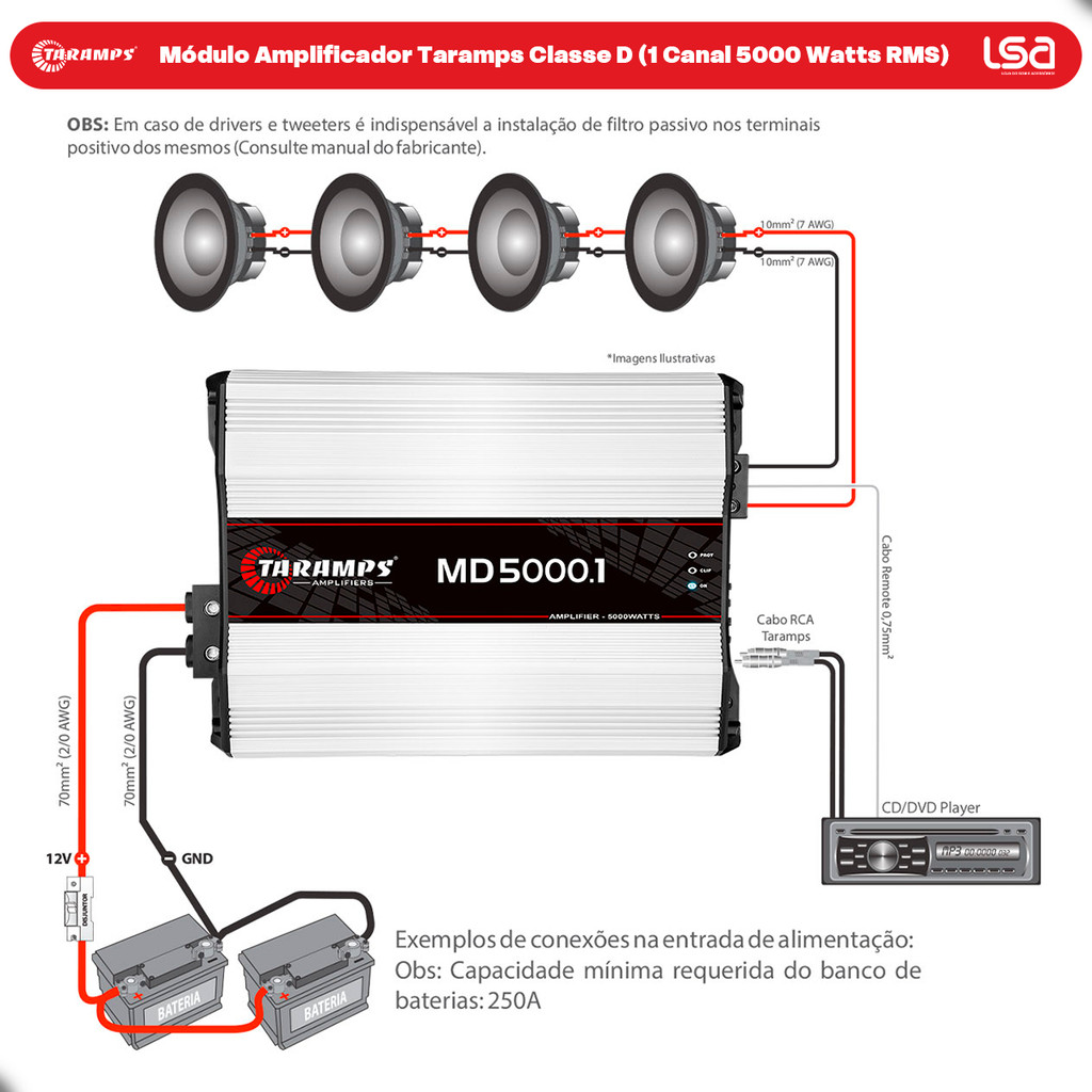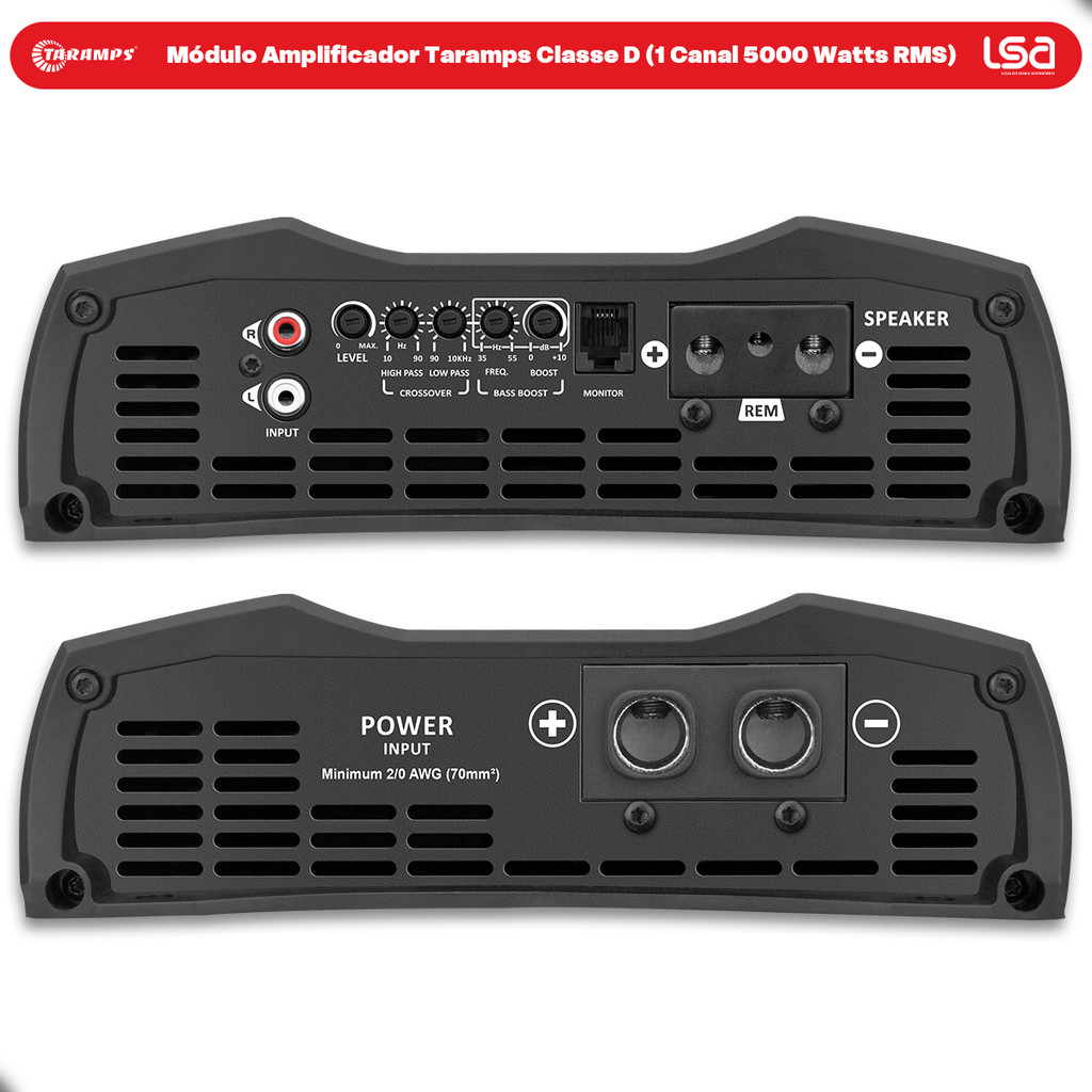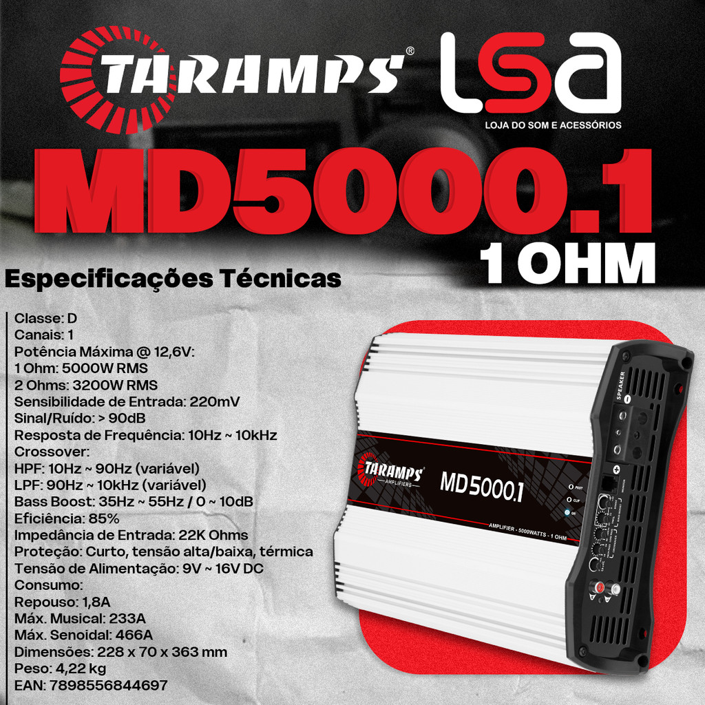 Módulo Amplificador Taramps MD5000.1 (1 Canal de 5000WRMS) 5000 Watts RMS 1 Ohm Full Range Som Automotivo