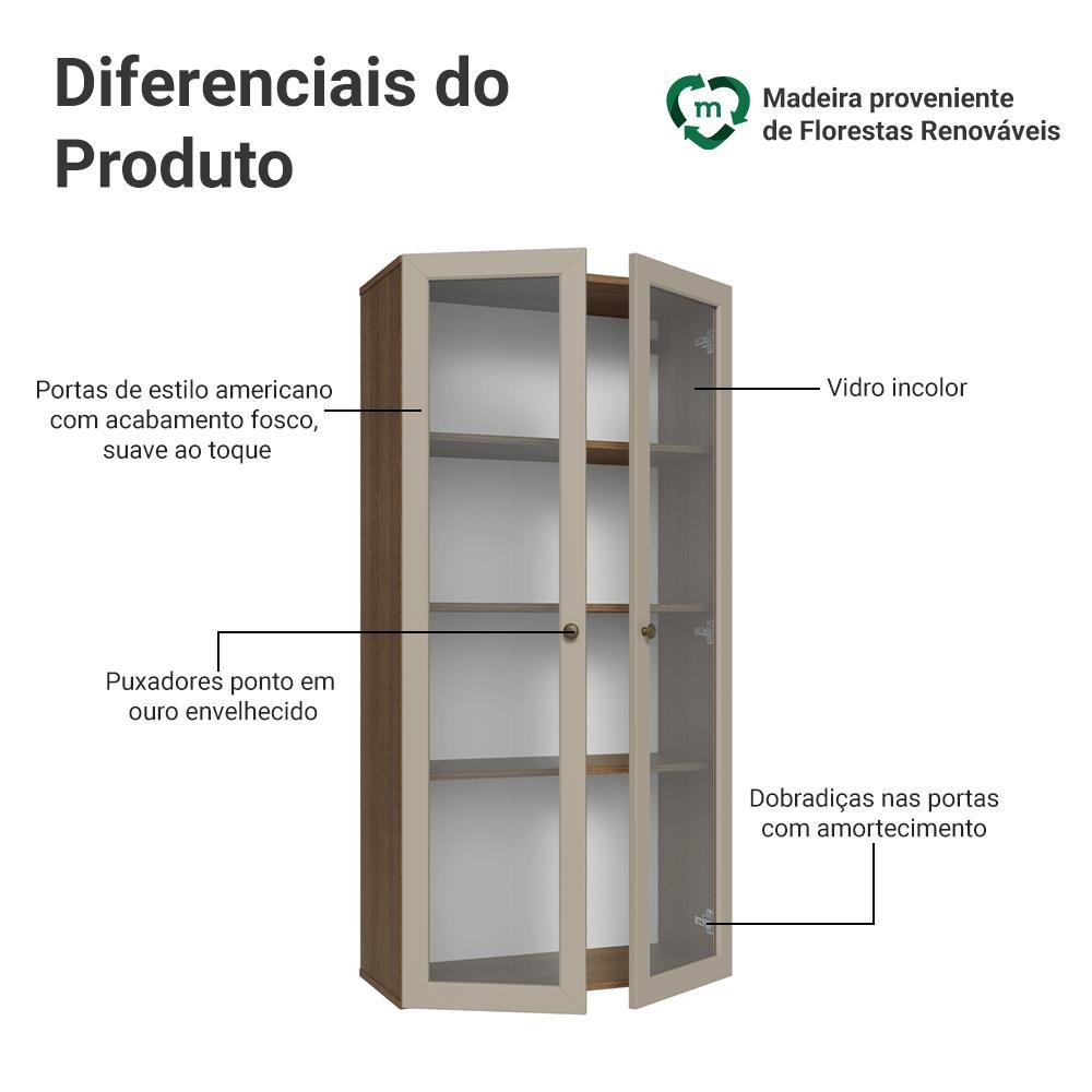 Módulo Cristaleira 70 cm 2 Portas de Vidro Rustic/Crema Vik Madesa