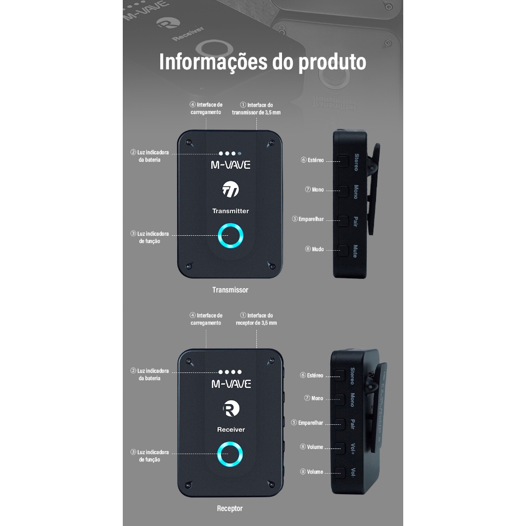 M-VAVE WP-9 Sistema de transmissão de monitoramento de retorno de ouvido sem fio de 2,4 GHz Receptor transmissor