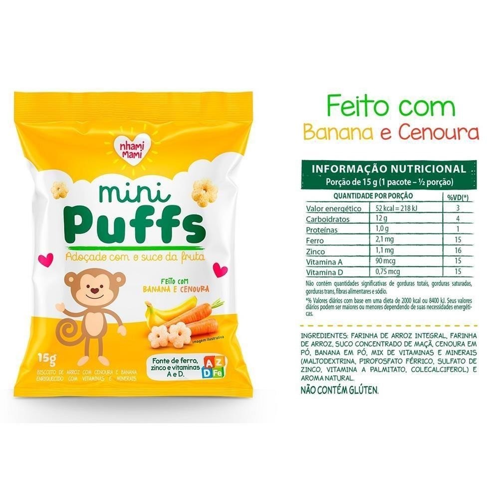 MINI PUFFS BANANA E CENOURA 6x15g - NHAMI MAMI