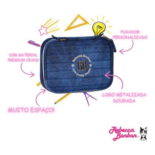 MOCHILA, ESTOJO OU LANCHEIRA REBECCA BONBON JUVENIL JEANS ORIGINAL