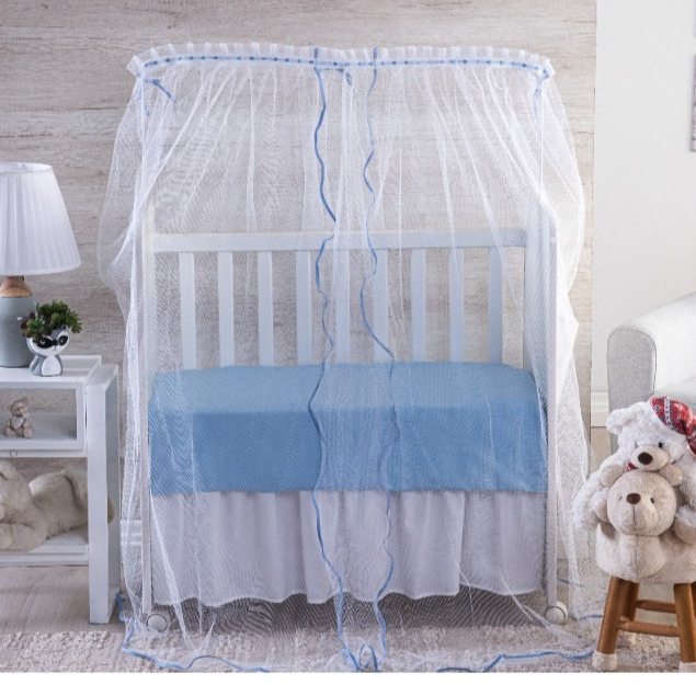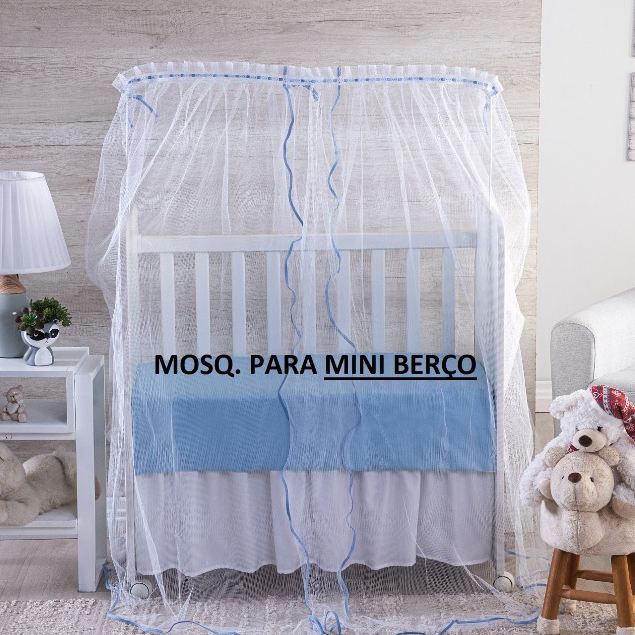 MOSQUITEIRO PARA ****** MINI BERÇO ****** TULE BRANCO COM VIES AZUL DELICADO