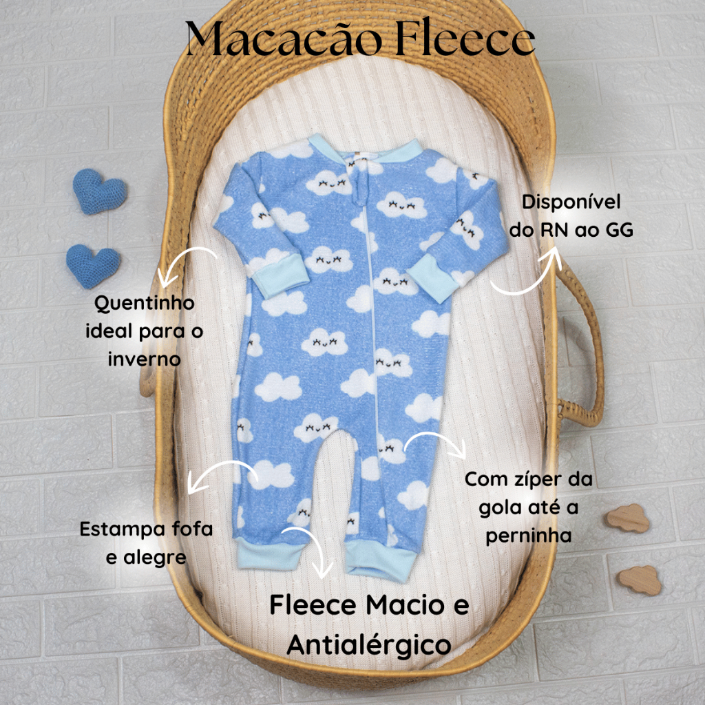 Macacão Em Fleece Peluciado Com Ziper Central Bebê Menino Para Dias Frios Roupa Inverno Confortavel