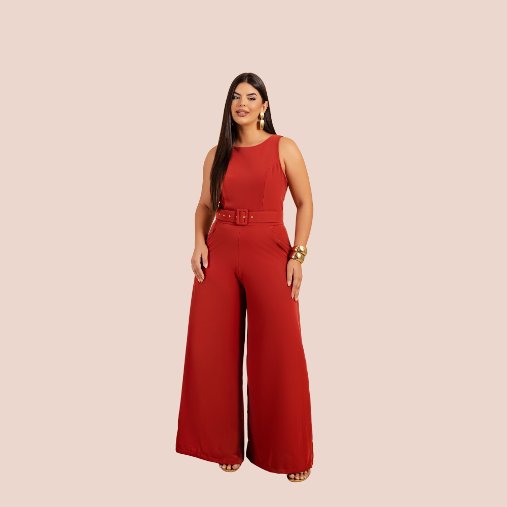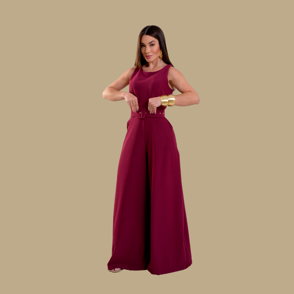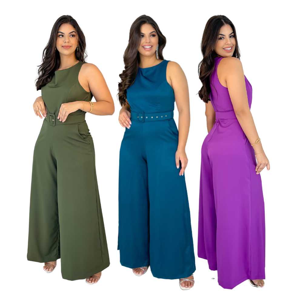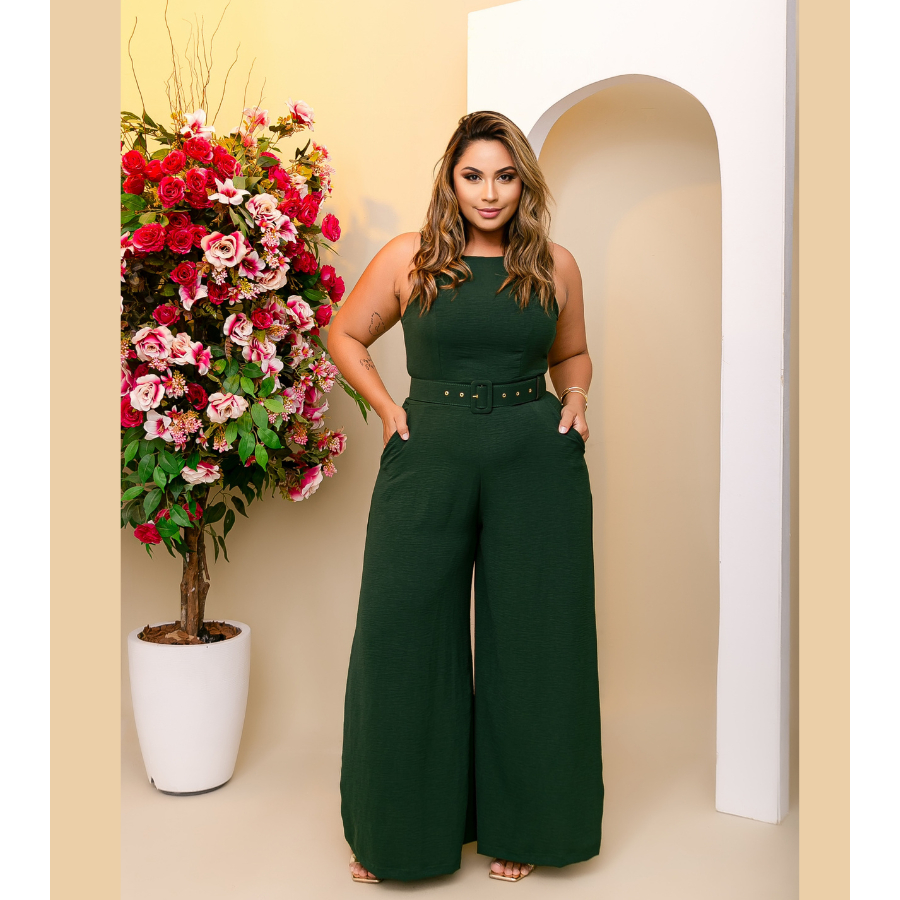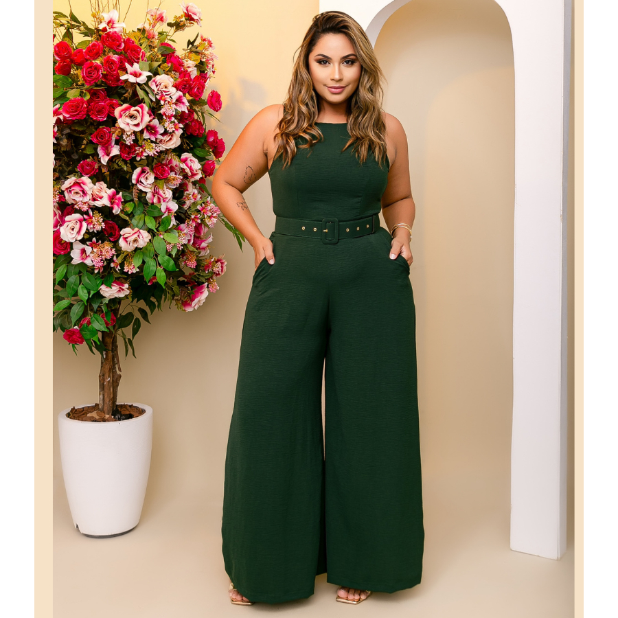 Macacão Pantalona Cinto Coberto